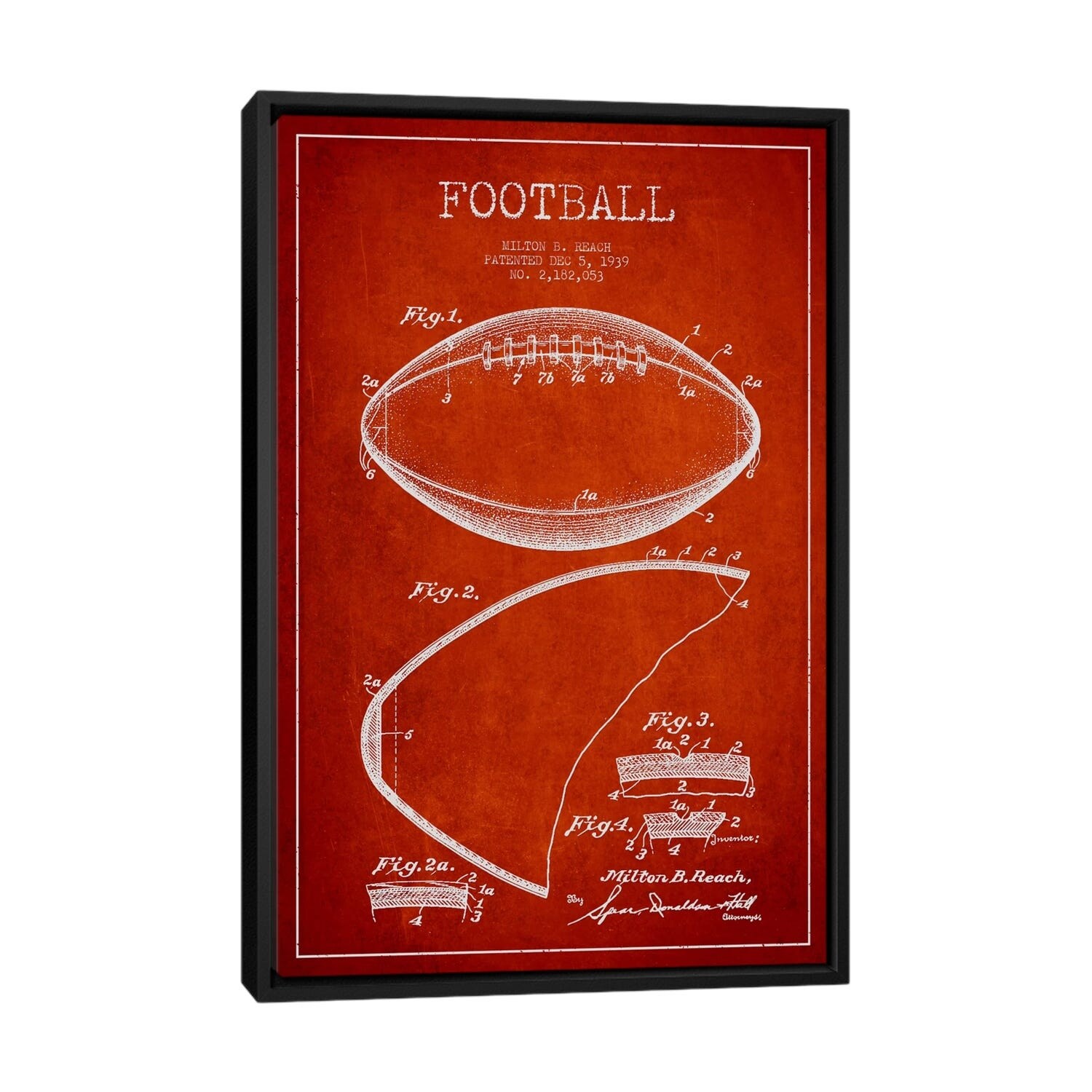 iCanvas "Football Red Patent Blueprint" by Aged Pixel Framed Canvas Print
