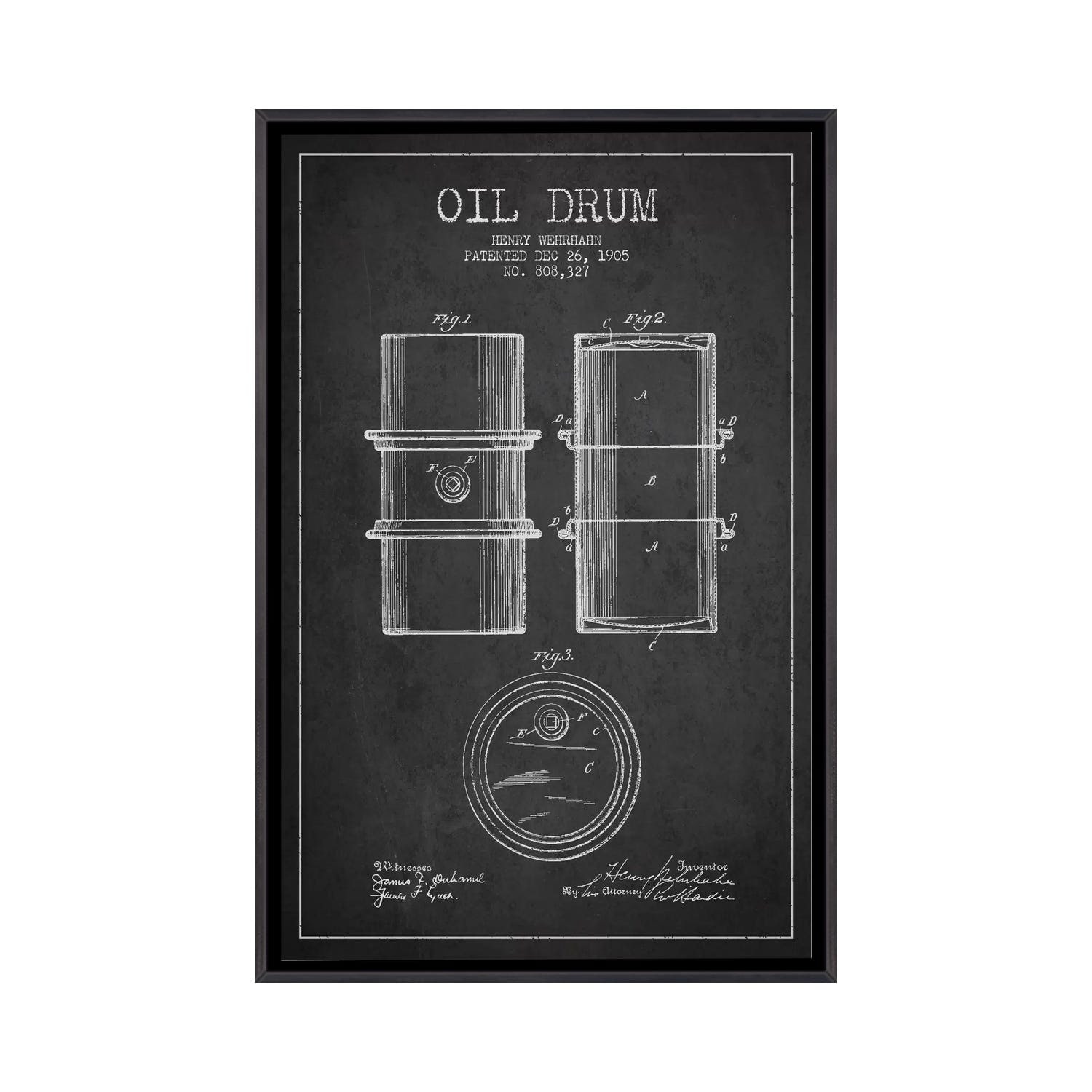 iCanvas "Oil Drum Charcoal Patent Blueprint" by Aged Pixel Framed