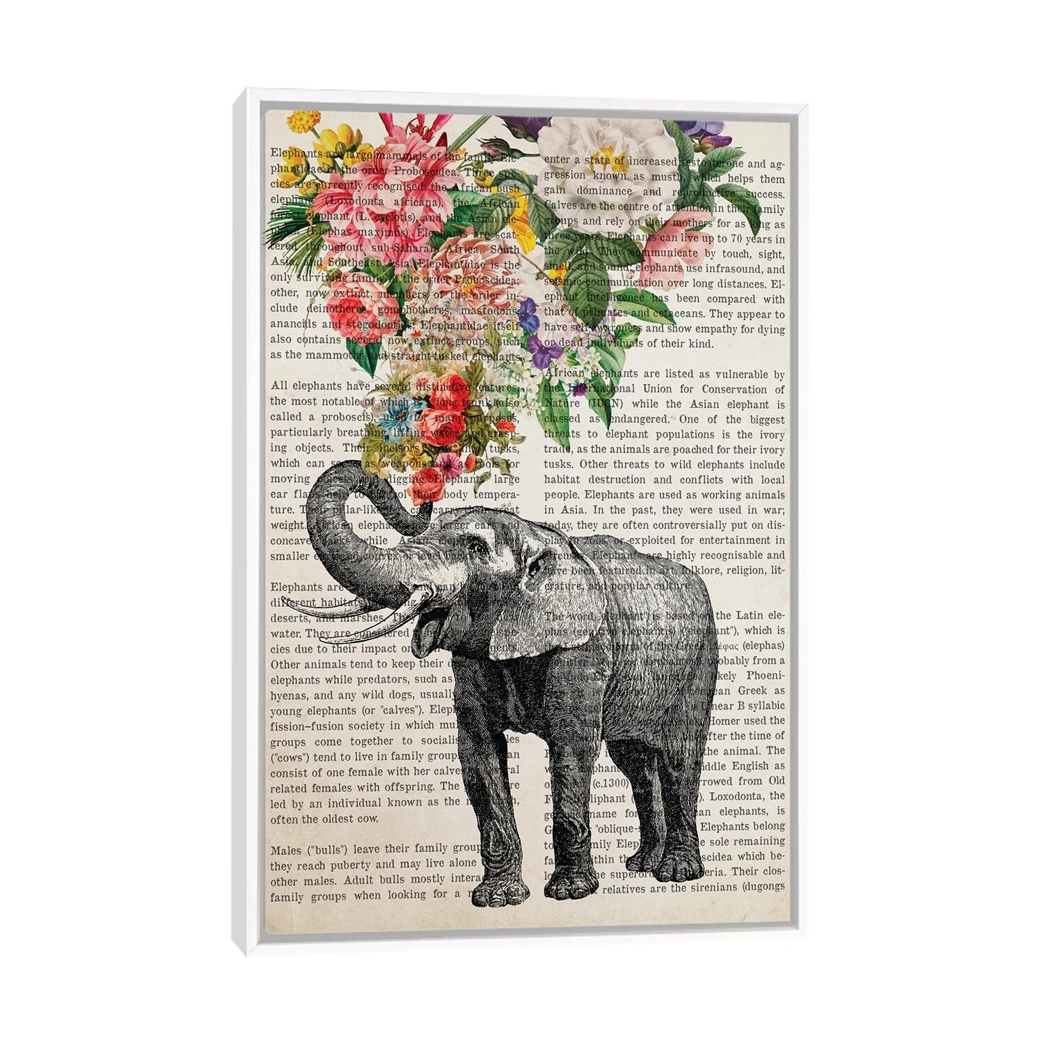 iCanvas "Elephant With Flowers Prints" by Aged Pixel Framed Canvas Print