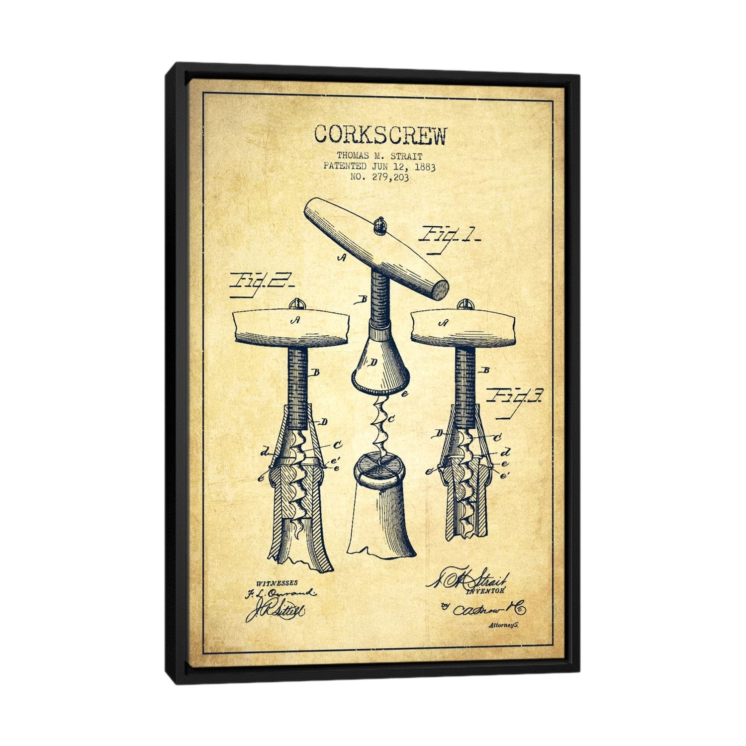 iCanvas "Corkscrew Vintage Patent Blueprint" by Aged Pixel Framed