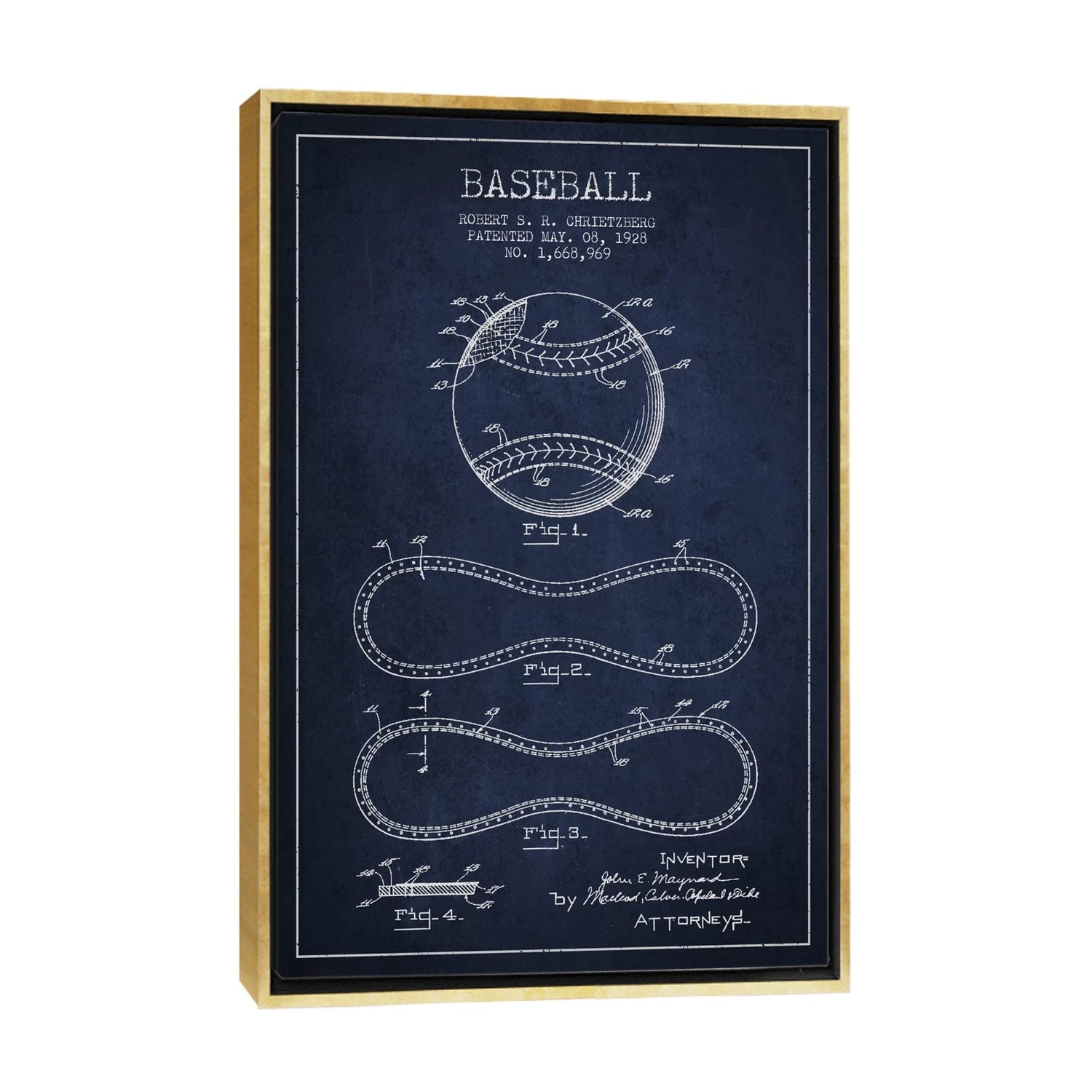 iCanvas "Baseball Navy Blue Patent Blueprint" by Aged Pixel Framed Canvas Print