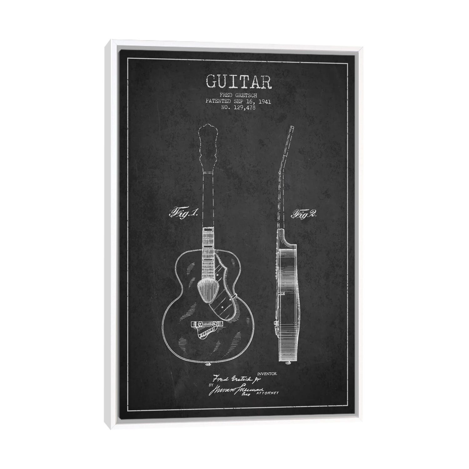 iCanvas "Guitar Charcoal Patent Blueprint" by Aged Pixel Framed