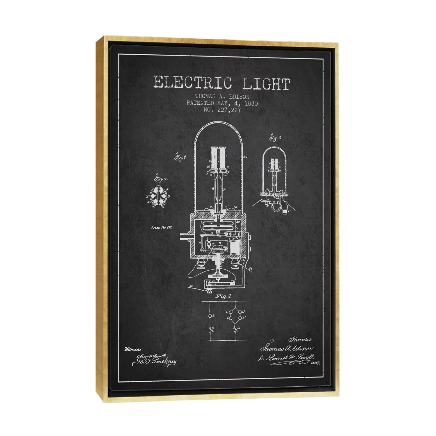 iCanvas "Electric Light Charcoal Patent Blueprint" by Aged Pixel Framed Canvas Print