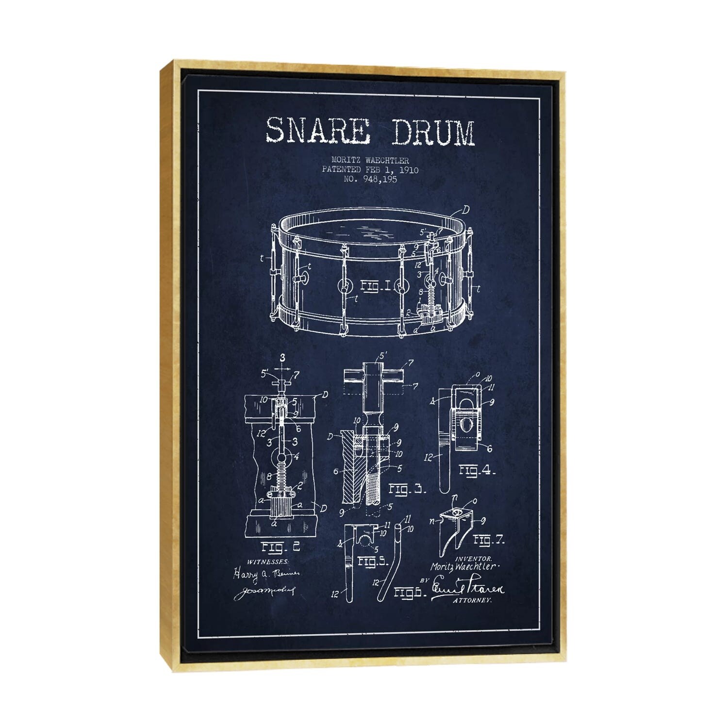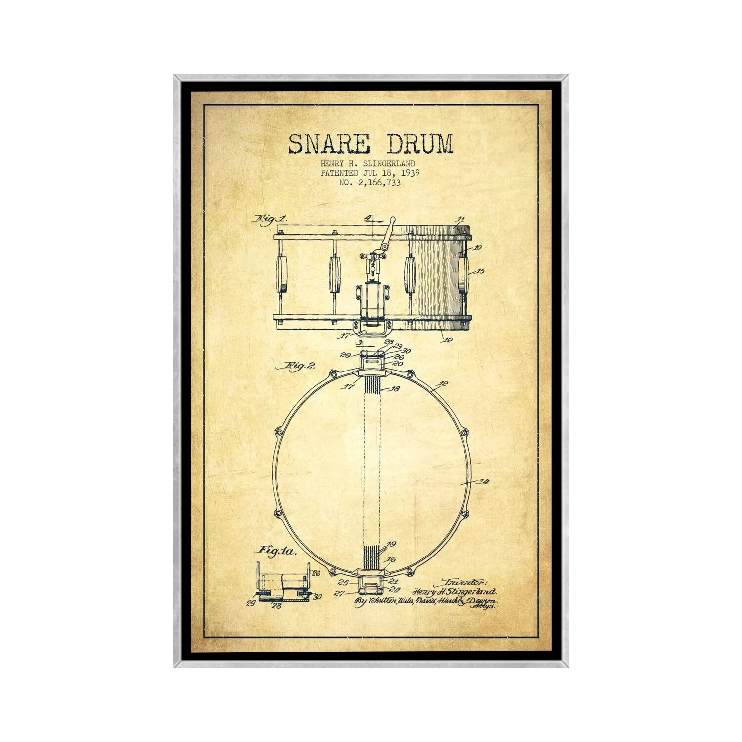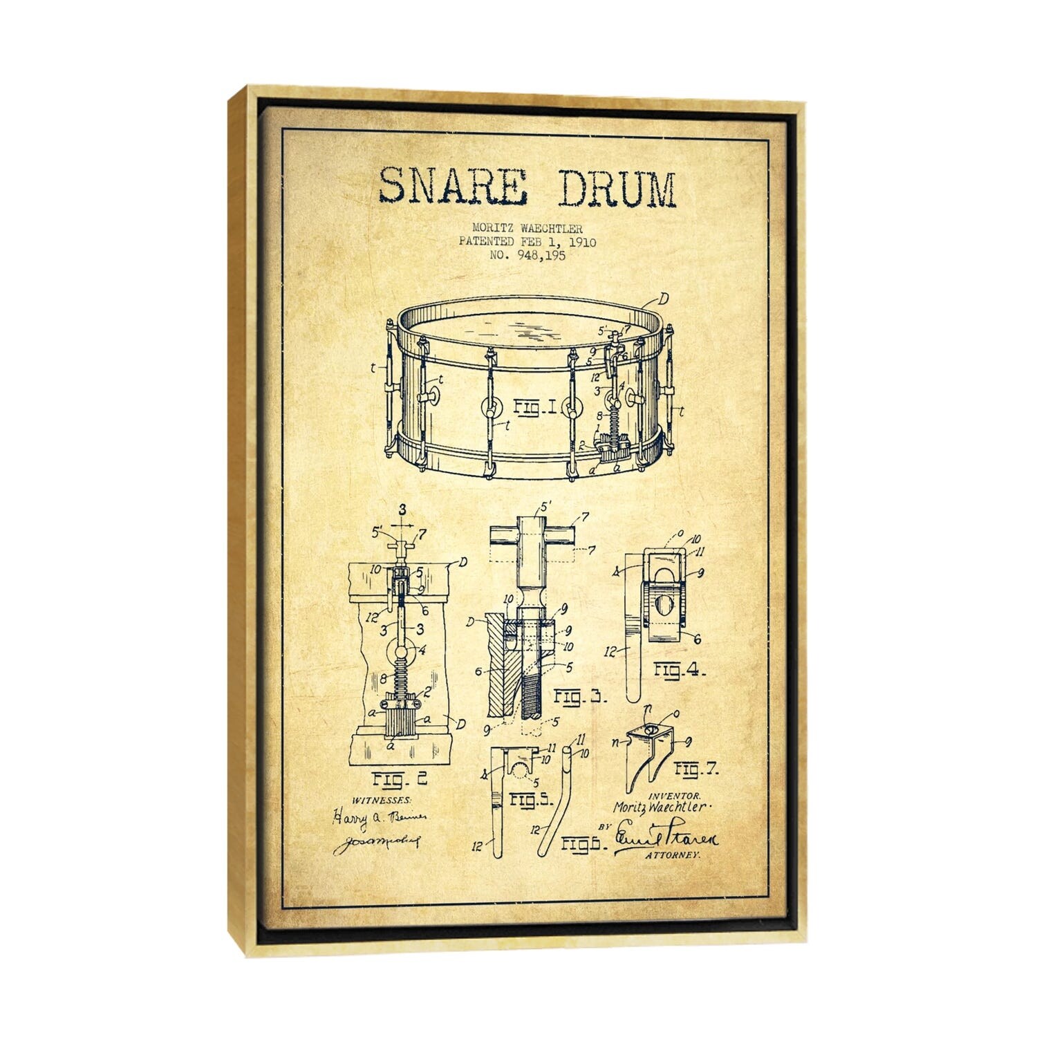 iCanvas "Waechtler Snare Vintage Patent Blueprint" by Aged Pixel Framed Canvas Print