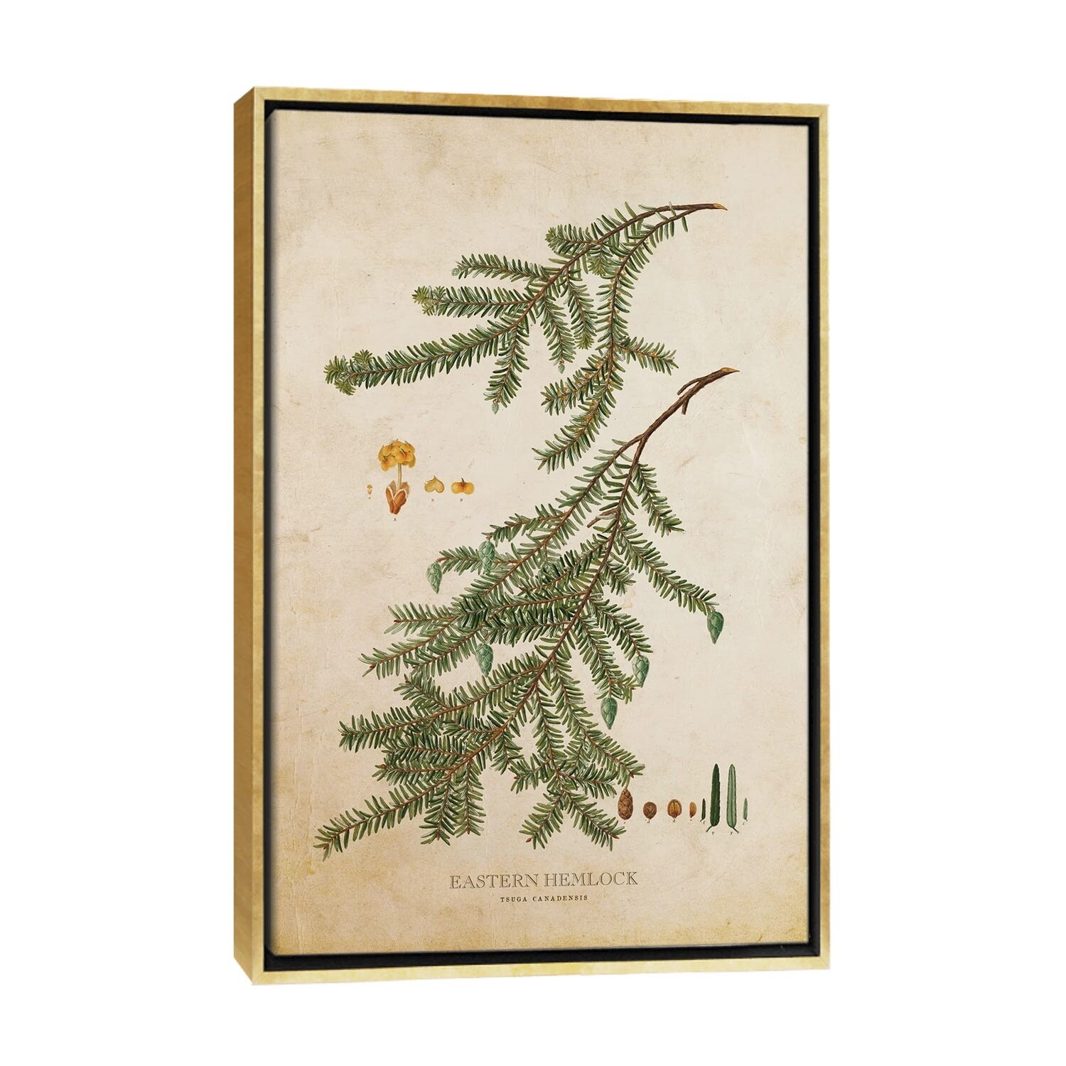 iCanvas "Vintage Eastern Hemlock Tree And Cone" by Aged Pixel Framed Canvas Print