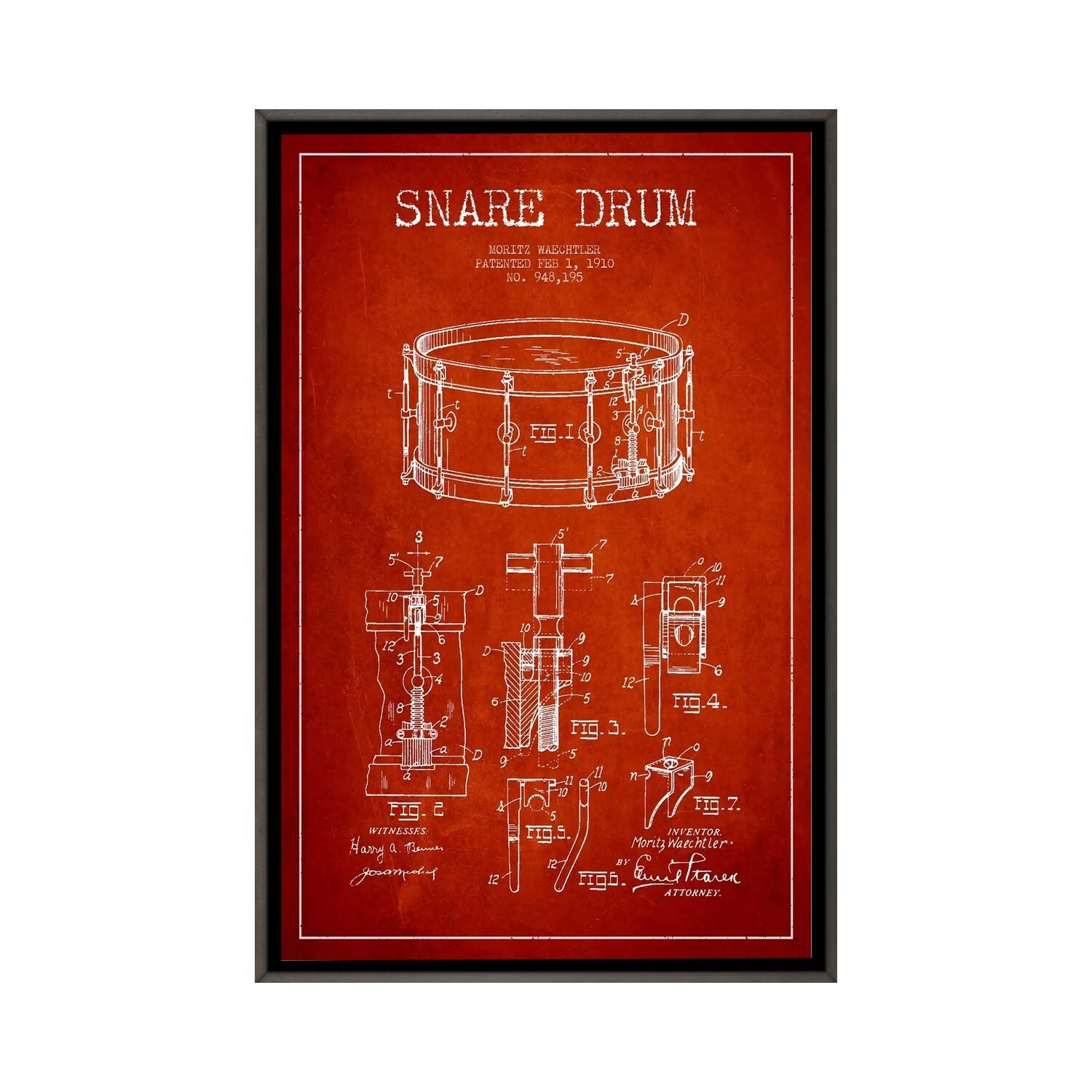 iCanvas "Waechtler Snare Red Patent Blueprint" by Aged Pixel Framed