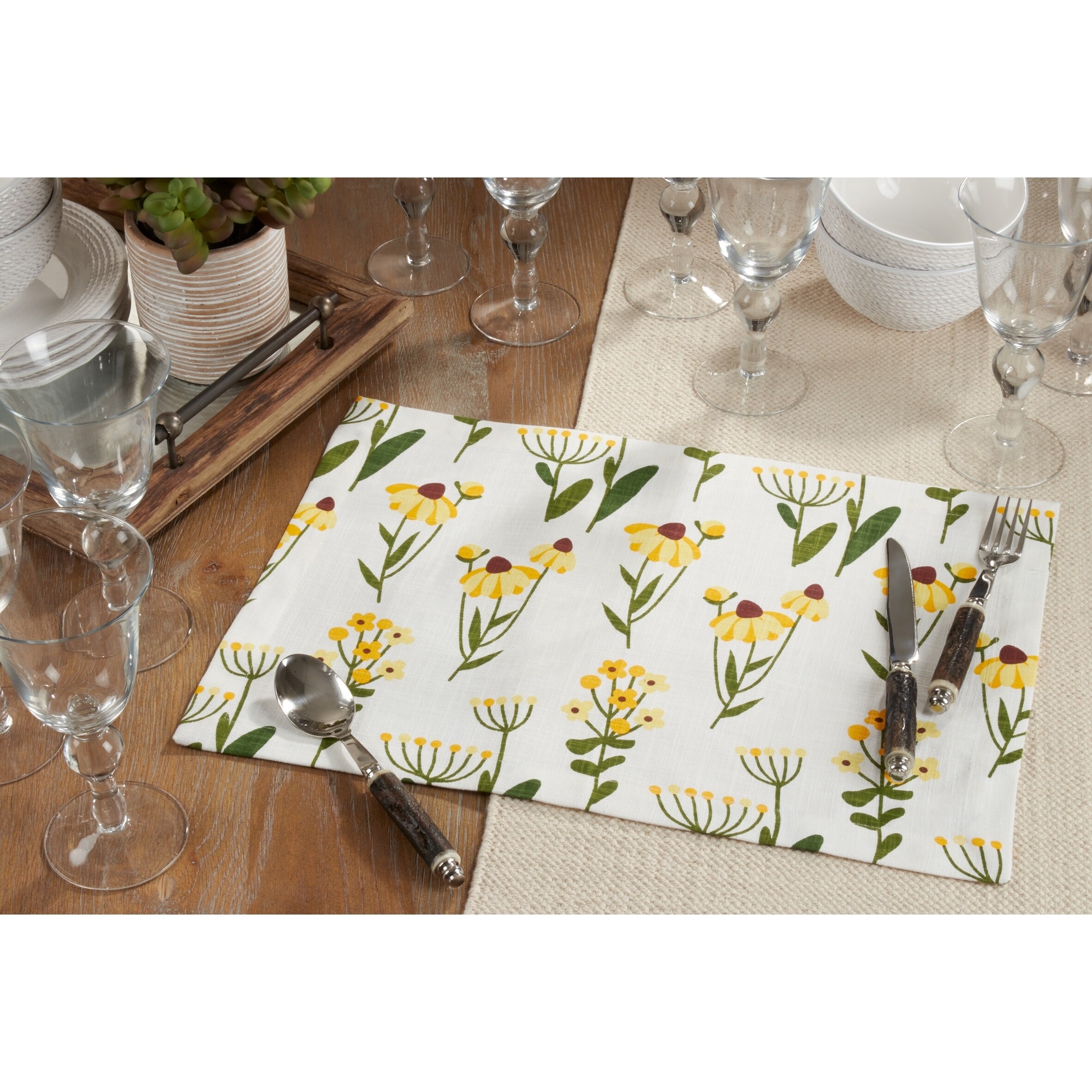 Cotton Placemats with Daisy Floral Design (Set of 4)