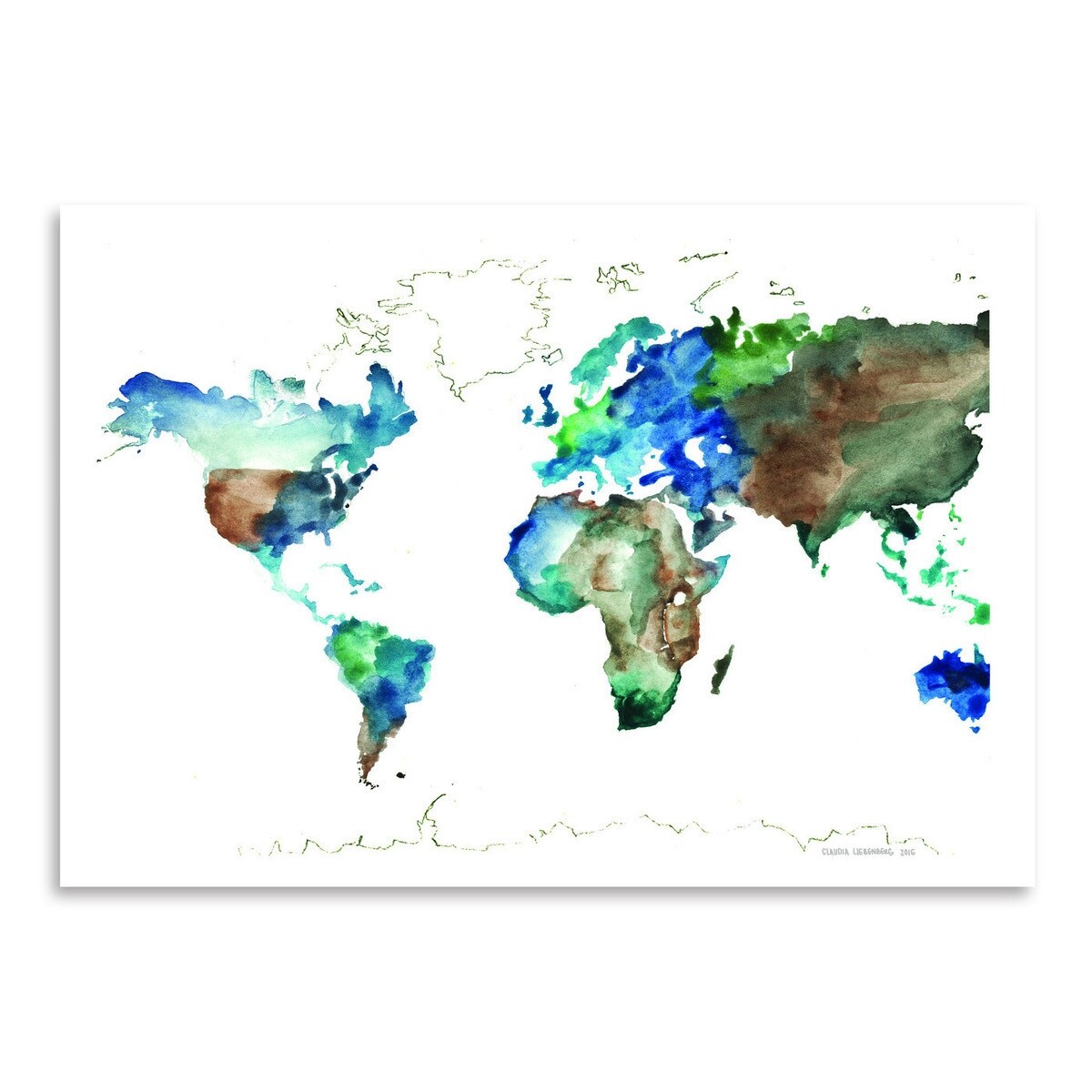 Americanflat - World Map by Claudia Libenberg - 16"x20" Poster Art Print