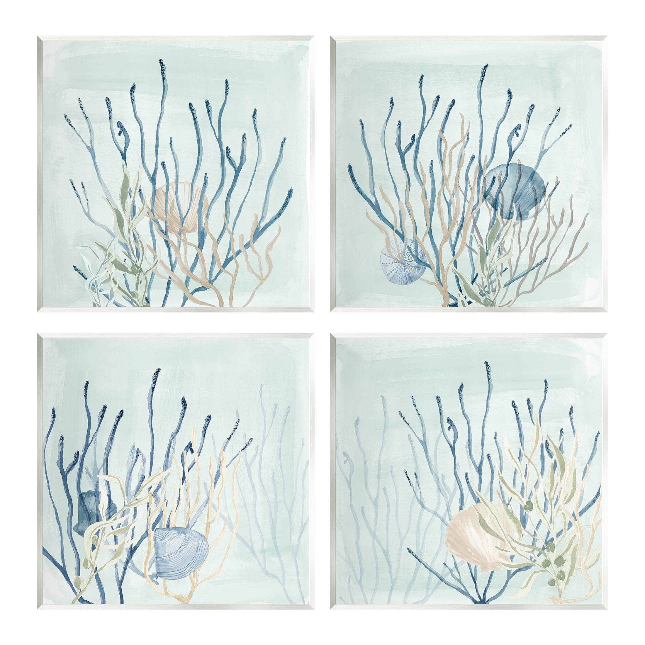 Stupell Swimming Underwater Sea Life Coral 4 Piece Wall Plaque Art Set by Lucille Price
