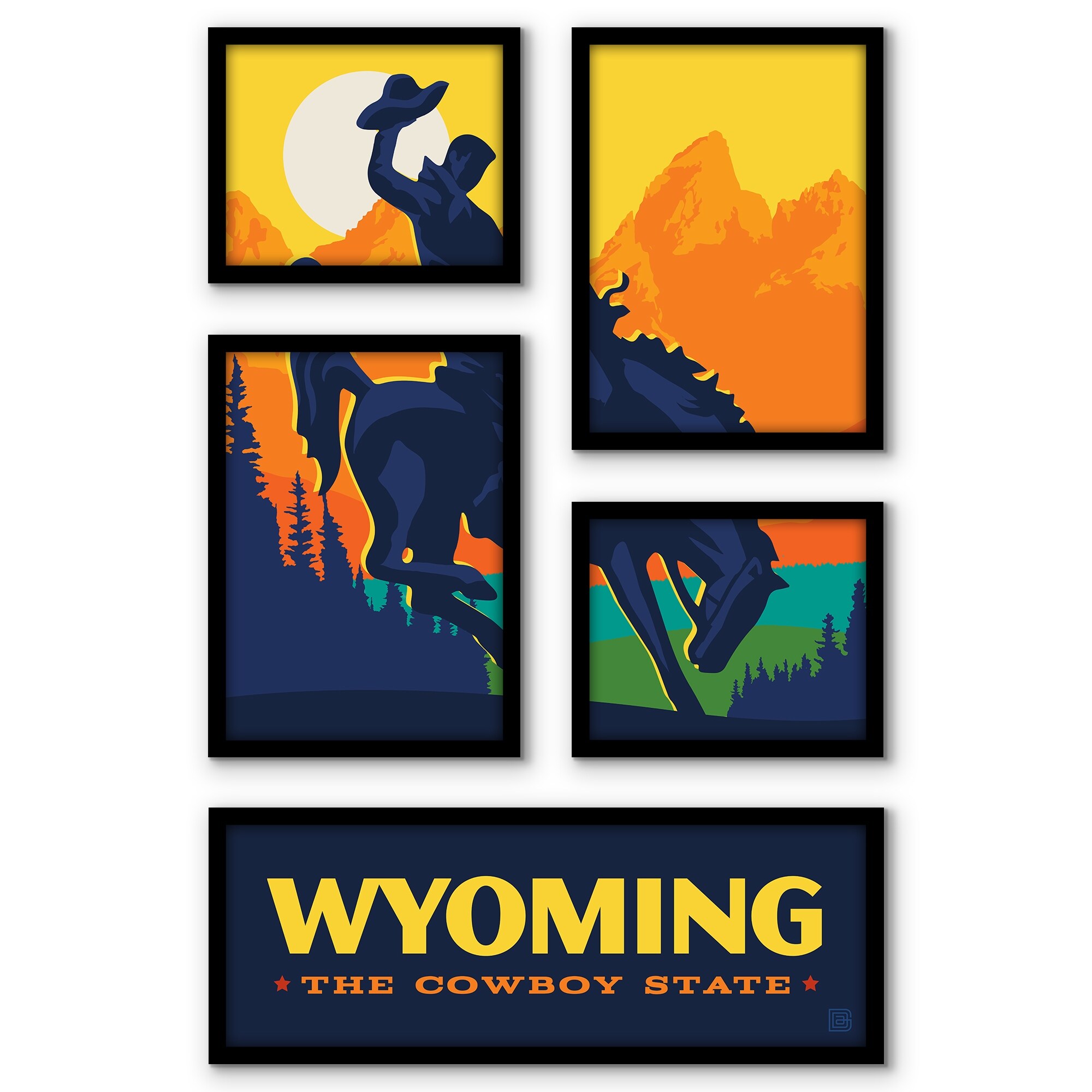 Americanflat Wyoming State Pride 5 Piece Grid Wall Art Room Decor Set