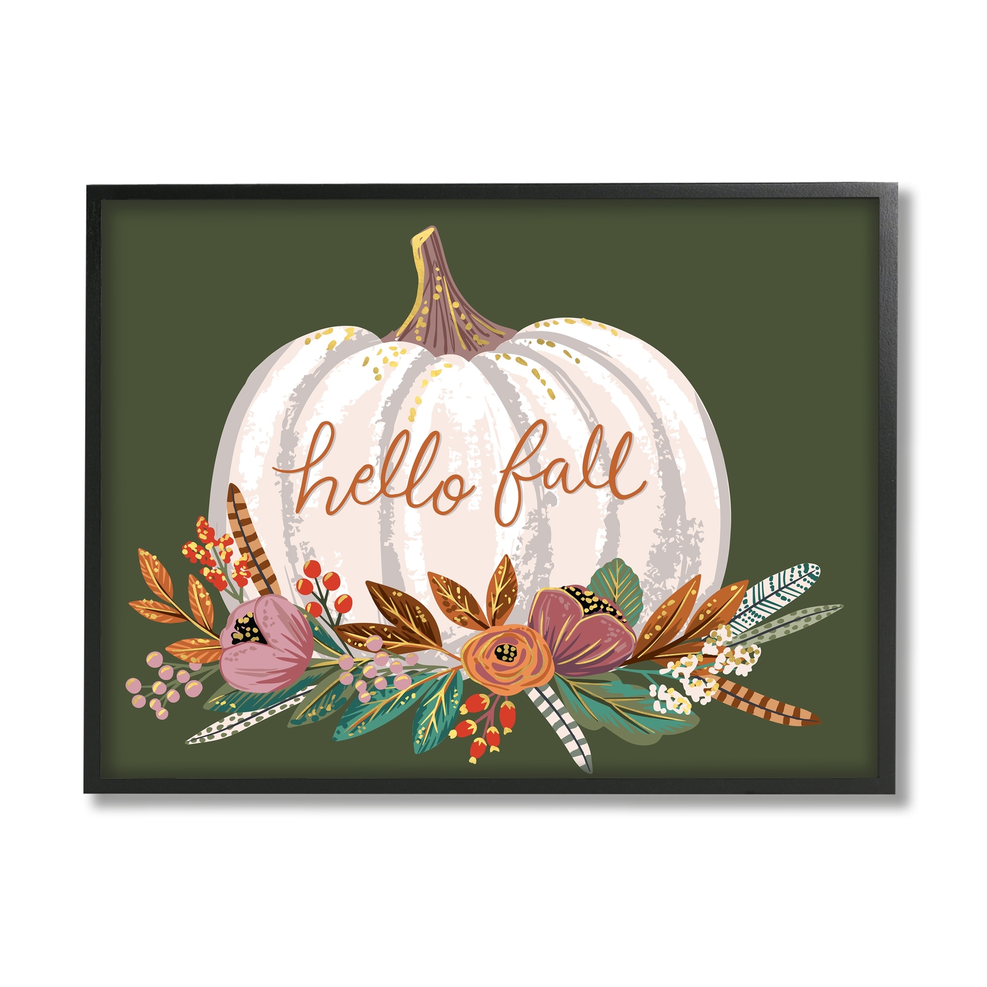 Stupell Autumnal Hello Fall Script Pumpkin Gourd Botanicals Framed Wall Art - Orange