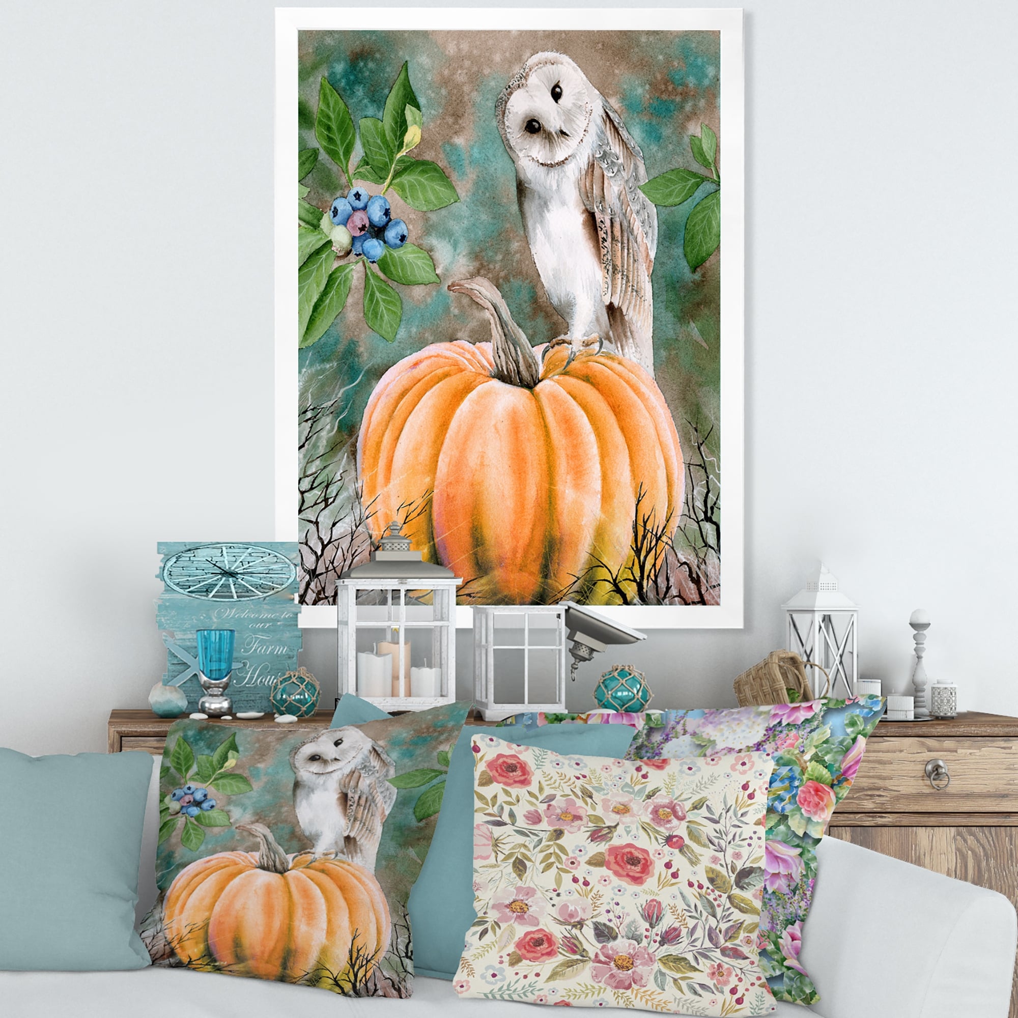 Designart "Barn Owl Sitting on A Pumpkin" Farmhouse Framed Art Print