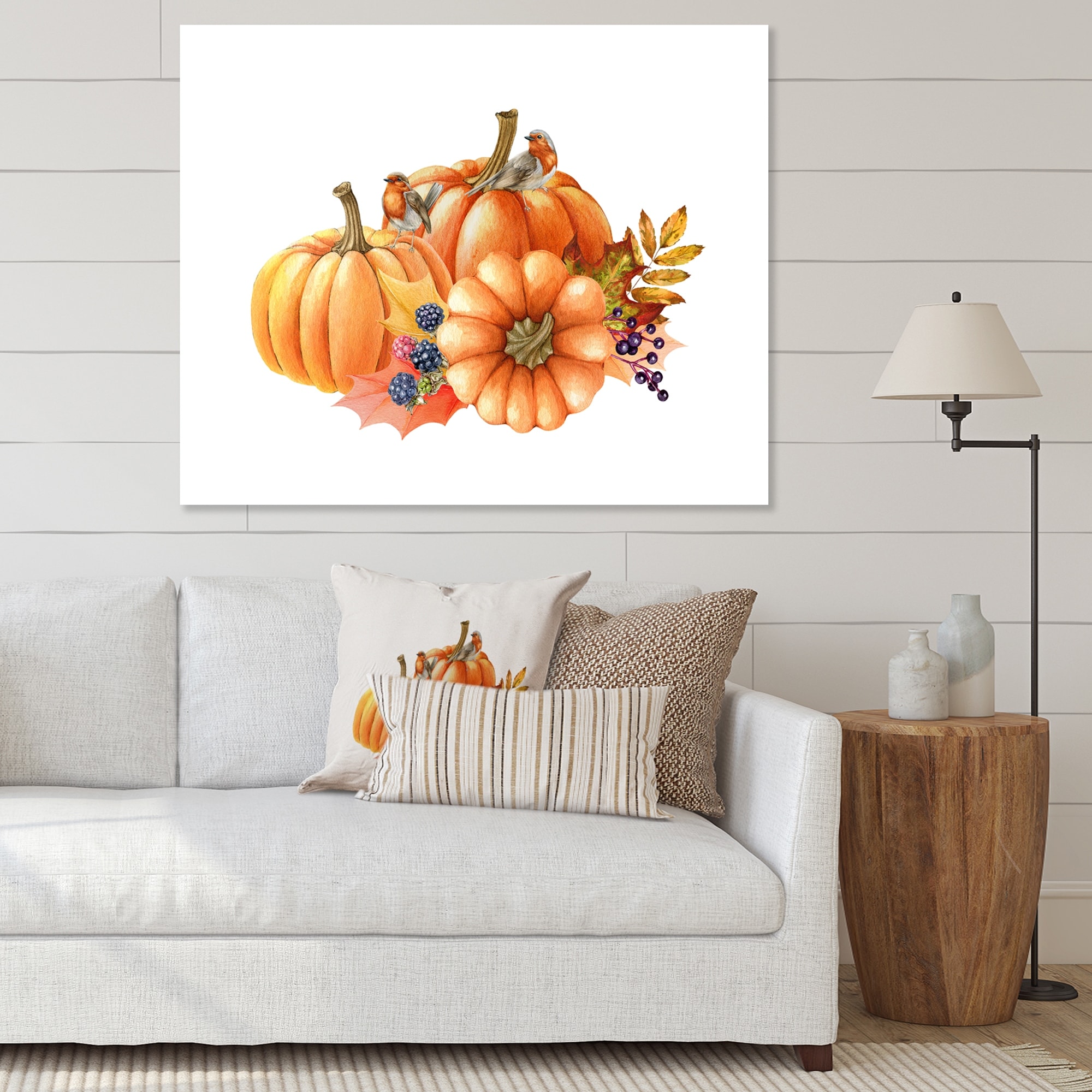 Designart "Pumpkin And Birds on White" Casual Canvas Wall Art Print