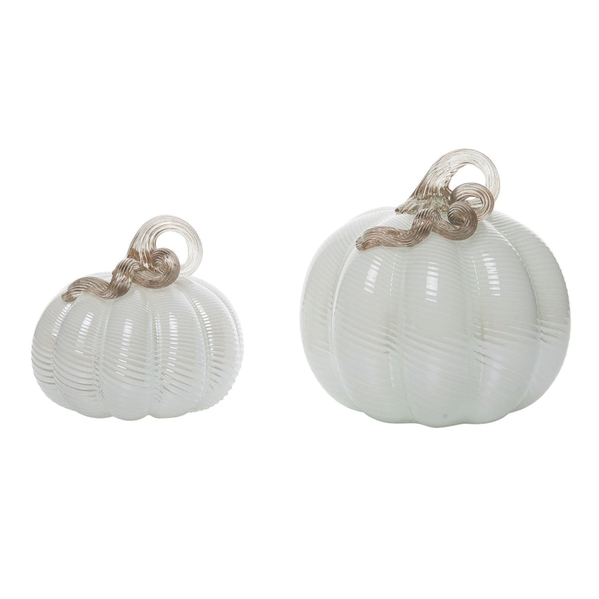 Set of 2 White Iridescent Harvest Swirl Pumpkins 7.5"