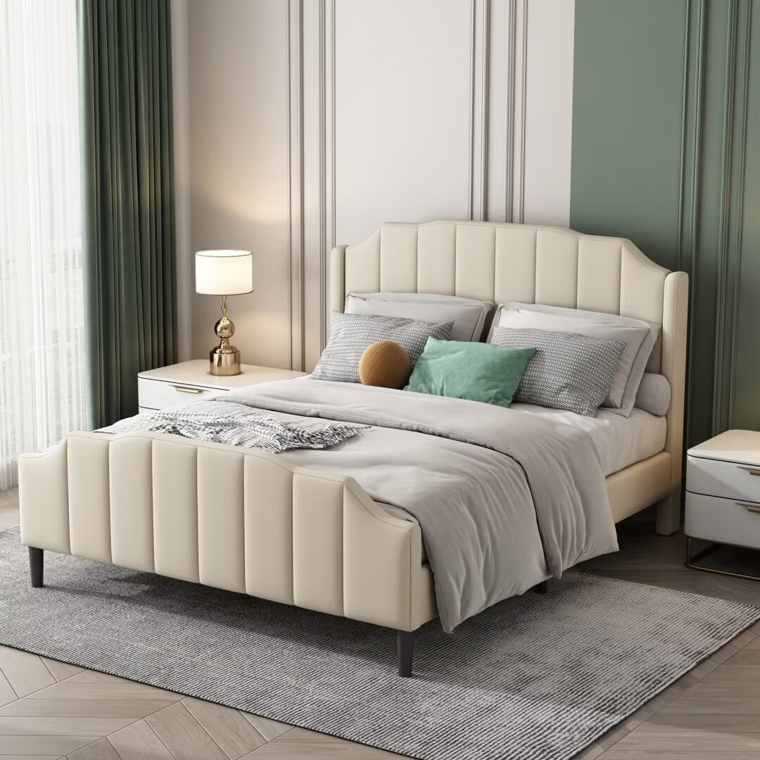 Elegant Queen Size Platform Bed with Upholstered Headboard and Footboard