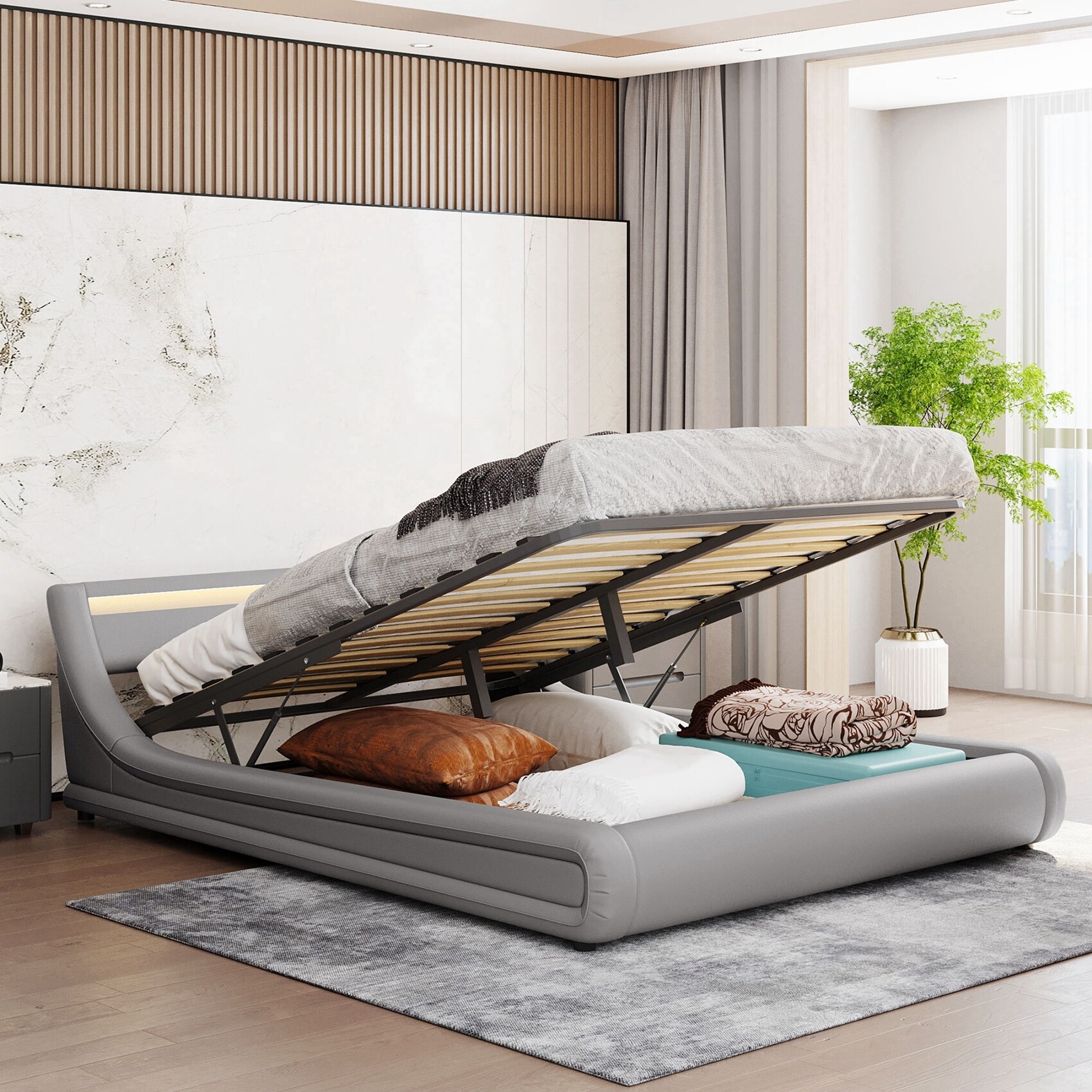 Queen Size Storage Platform Bed with LED Light