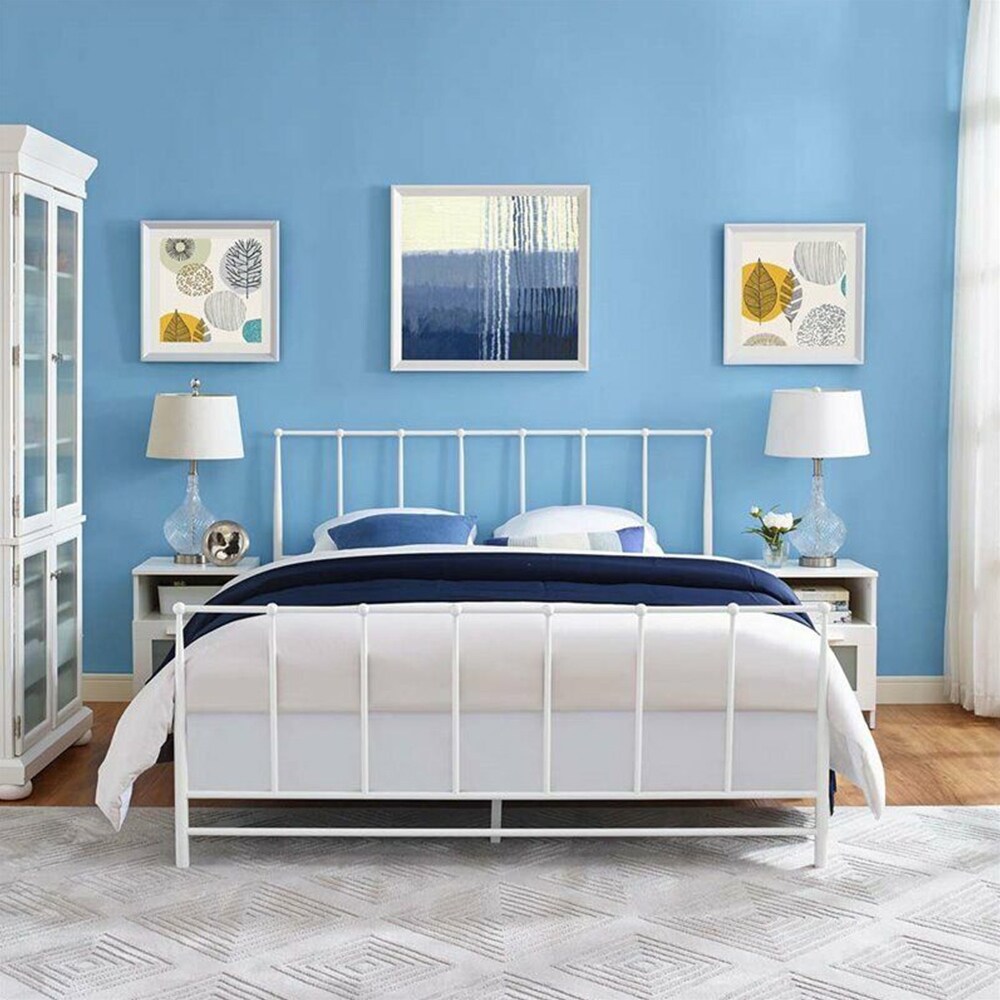 Turville Classic Queen Size White Metal Platform Bed