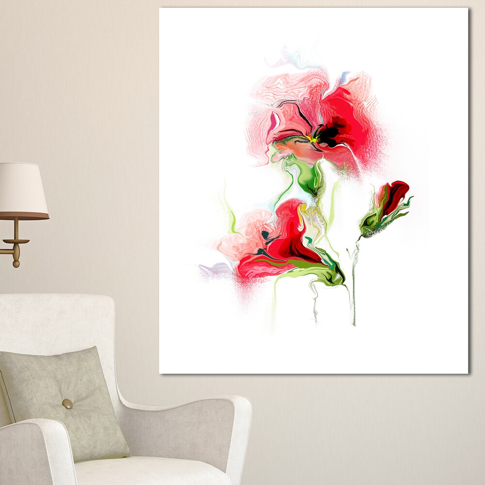 Designart "Red Floral Watercolor Illustration" Large Animal Canvas Wall Art Print - Red