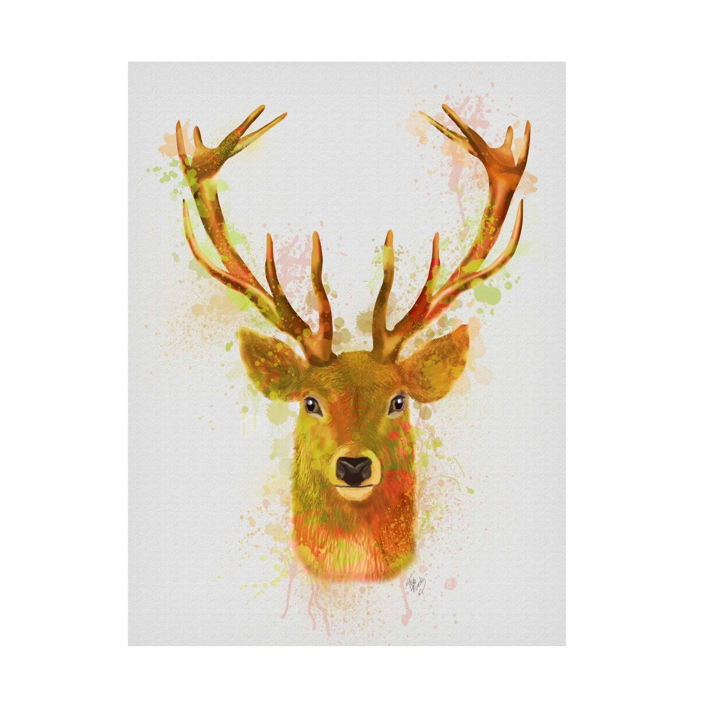 Fab Funky 'Deer Head 1 Rainbow Splash Red and Gold' Canvas Art