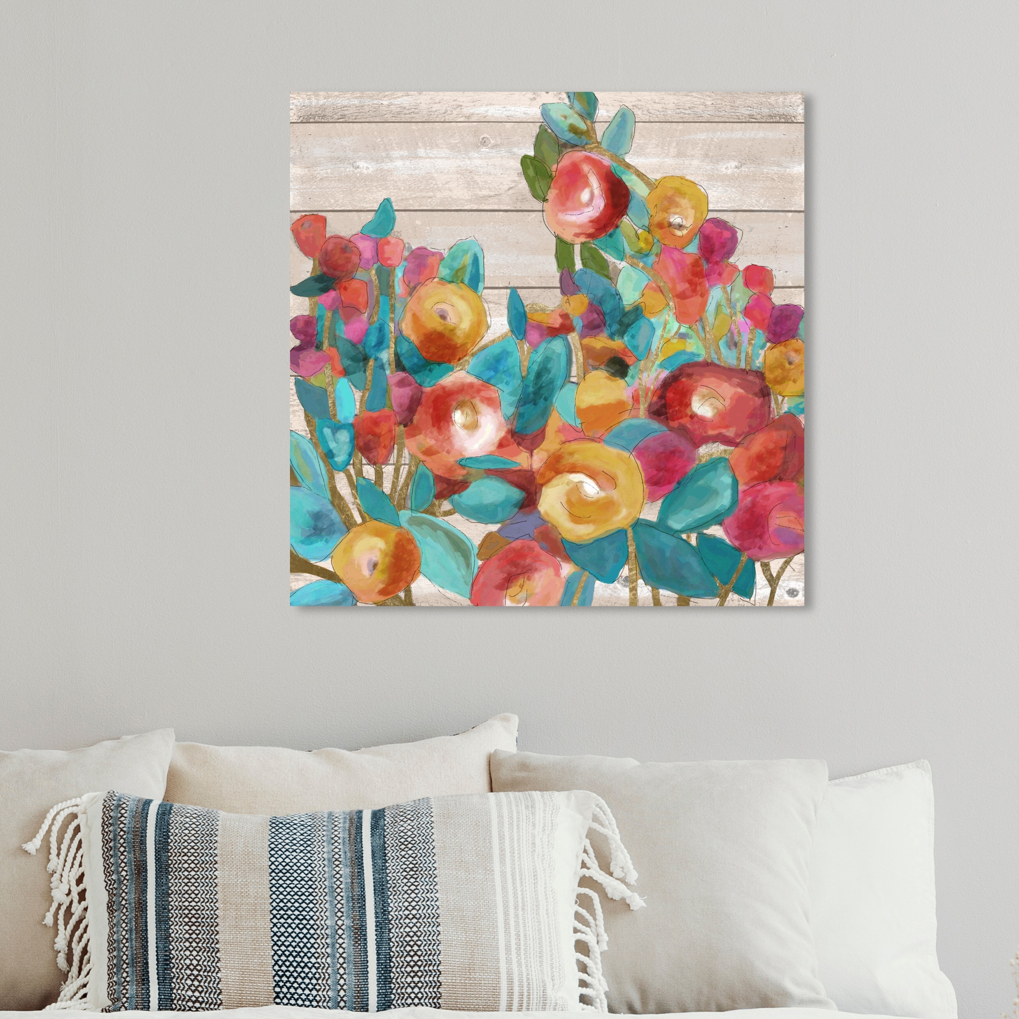 Oliver Gal Floral and Botanical Wall Art Canvas Prints 'Golden Florals II' Florals - Red, Yellow