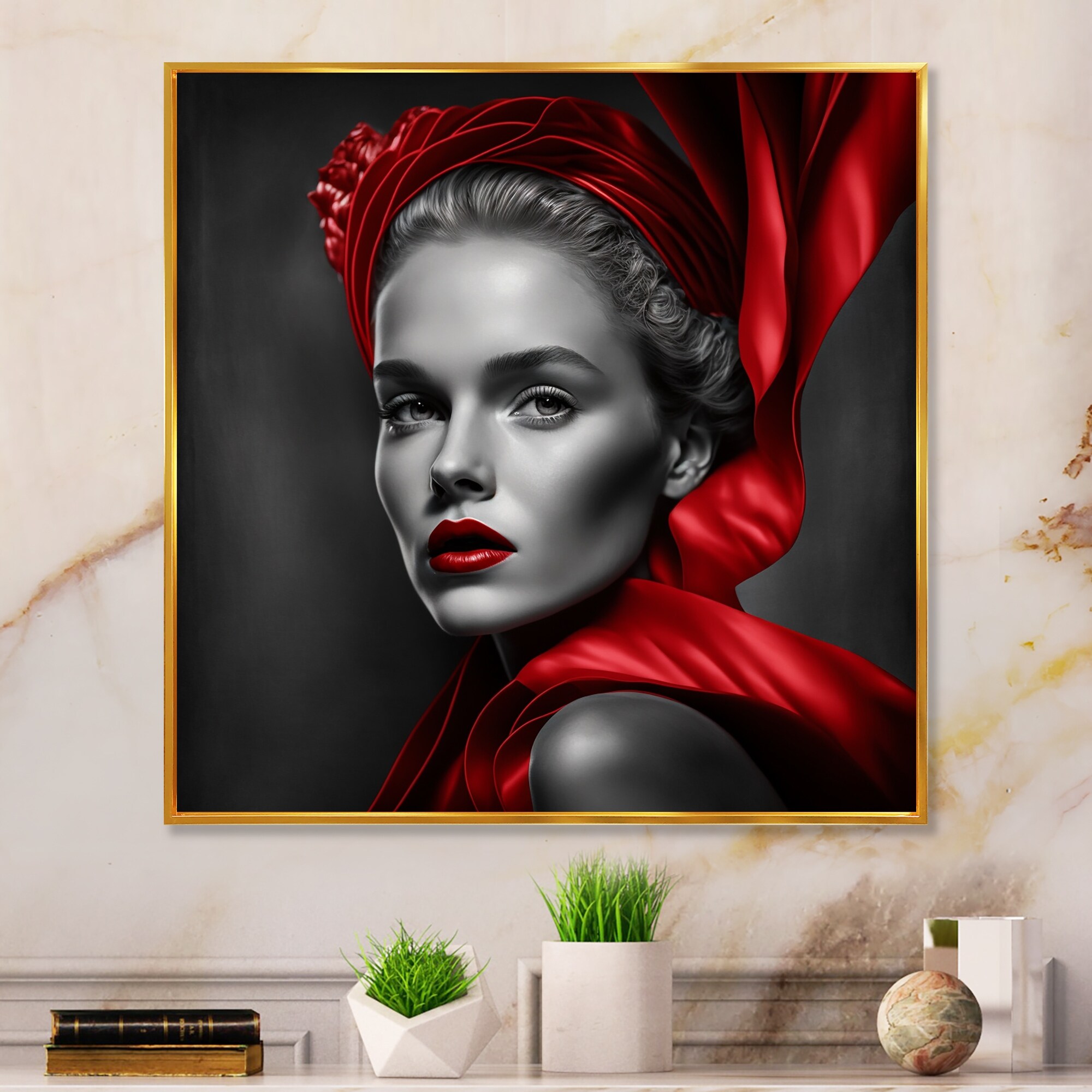 Designart "Elegant Retro Allure in Black And Red IV" Fashion Woman Framed Canvas Wall Art Print