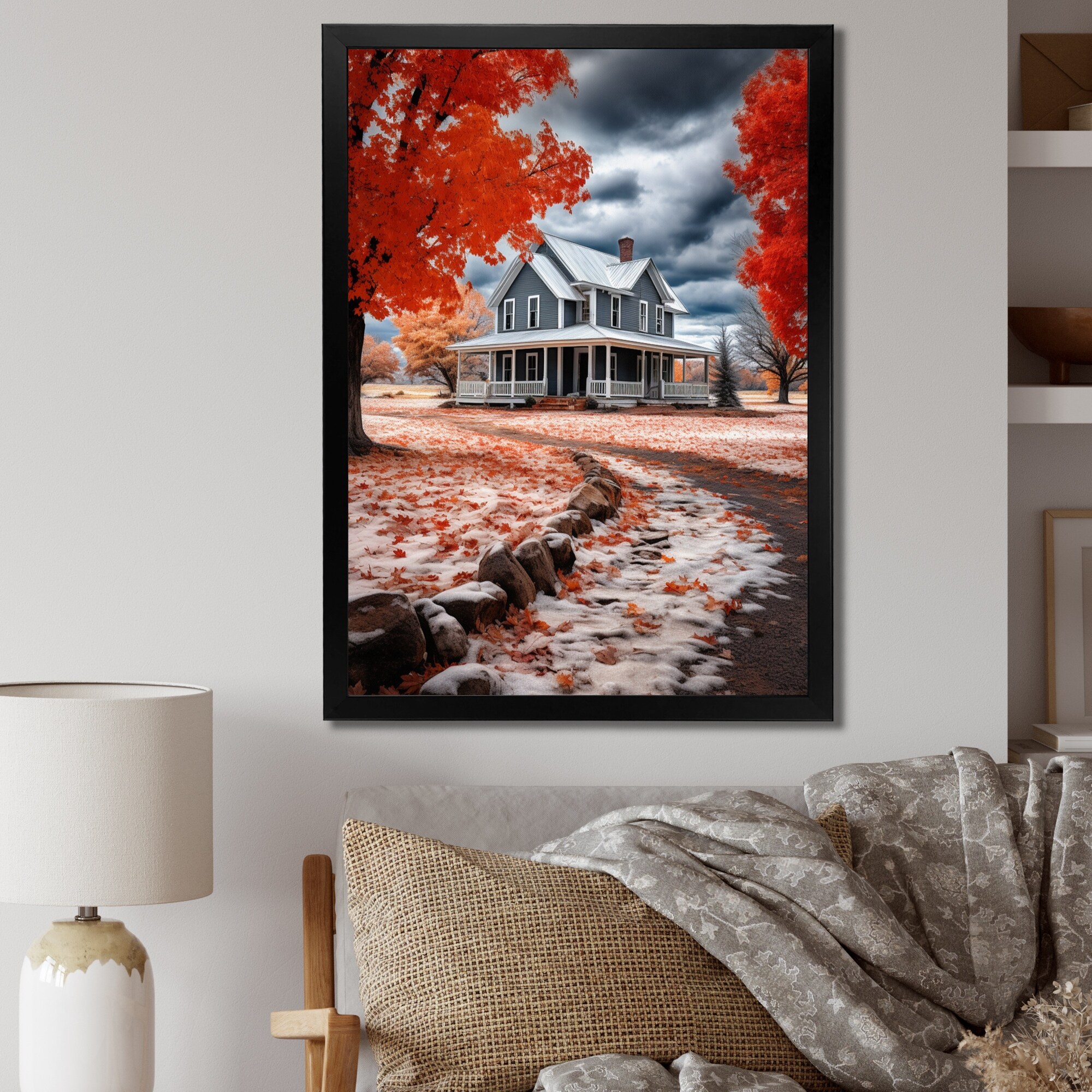 Designart "Farmhouse Red And Grey Harmony II" Farm Framed Canvas Art Print