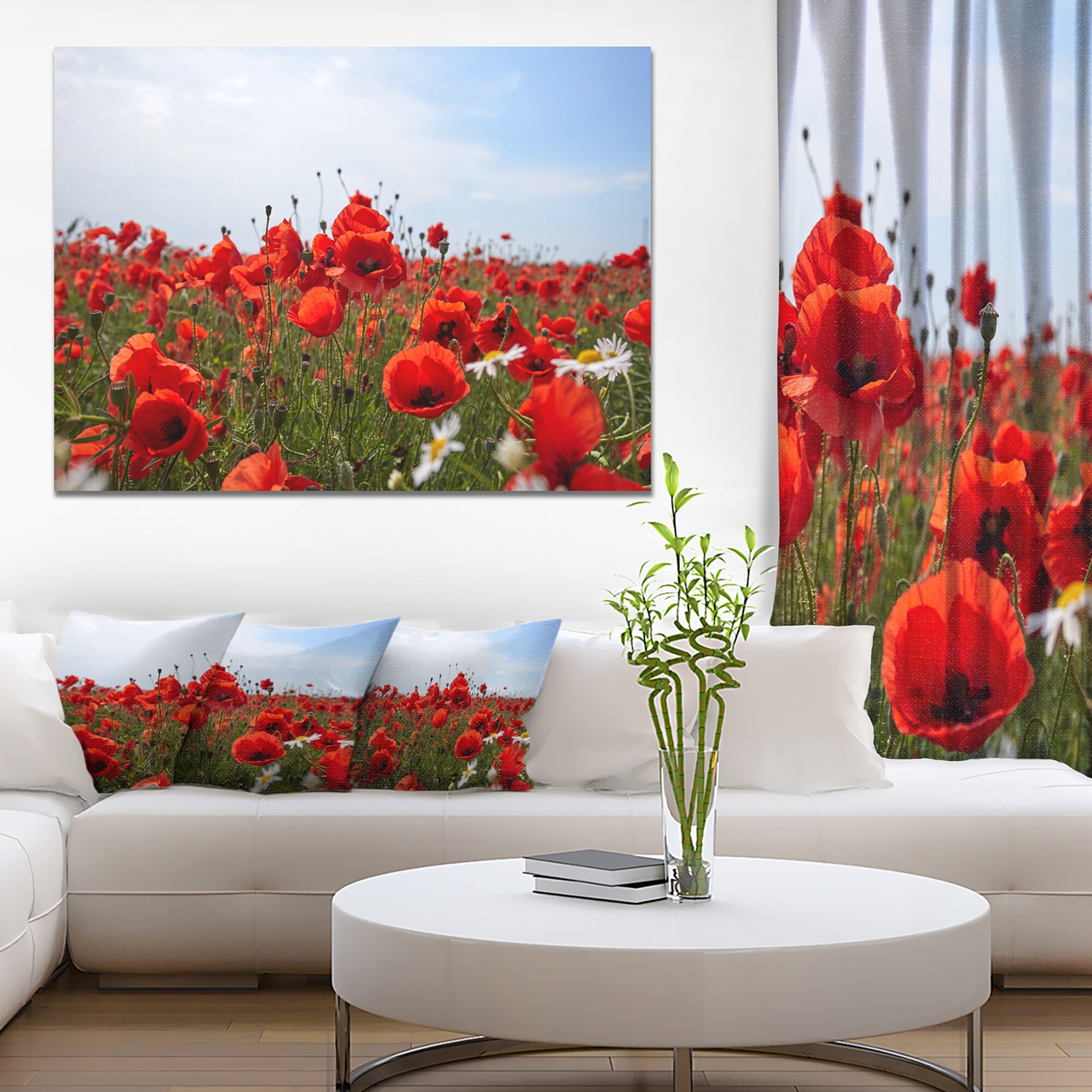 Designart "Red Poppies under Bright Blue Sky" Flower Artwork on Canvas