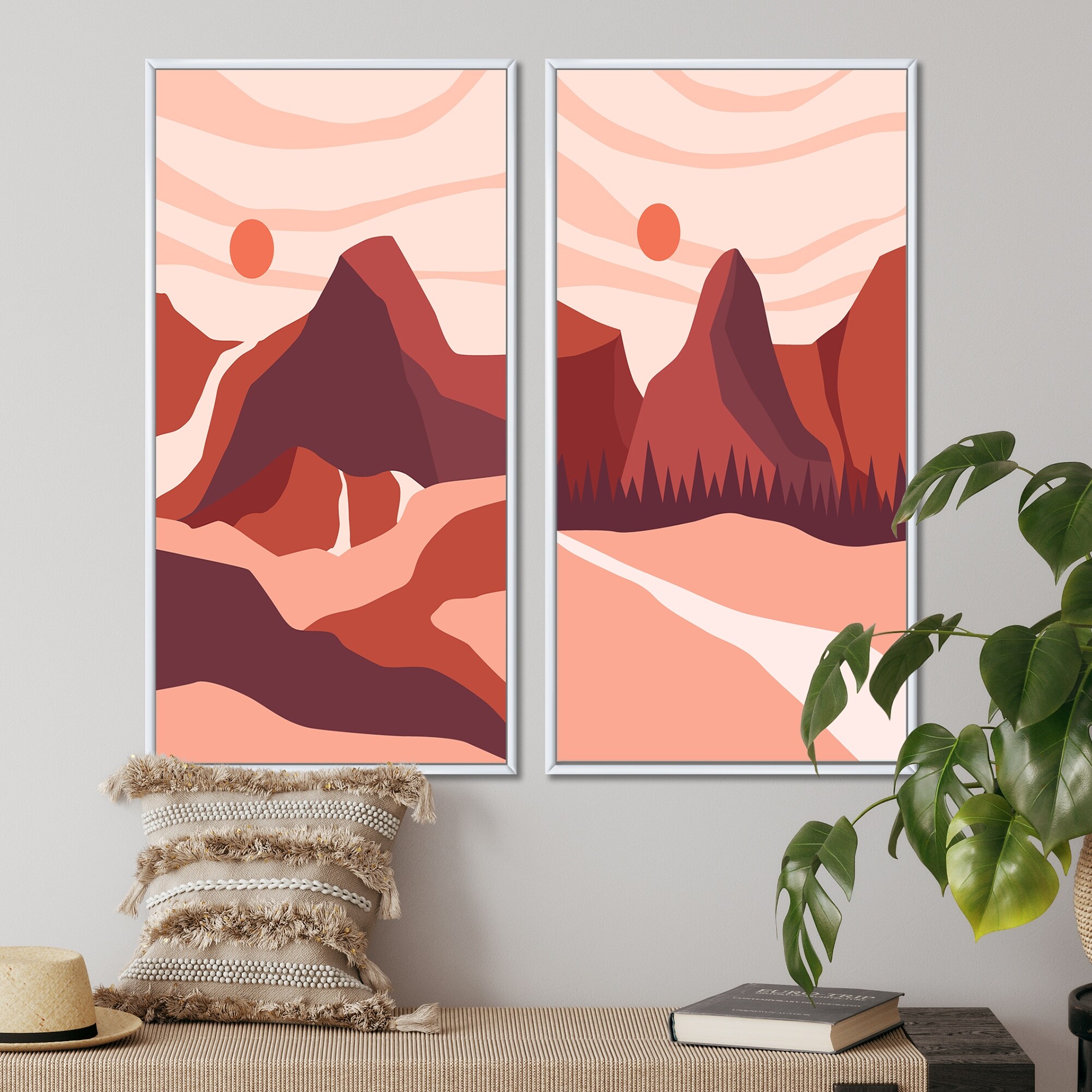 Designart "Abstract Landscape in Tones of Red And Pink II" Landscapes Framed Art Set of 2 Pieces