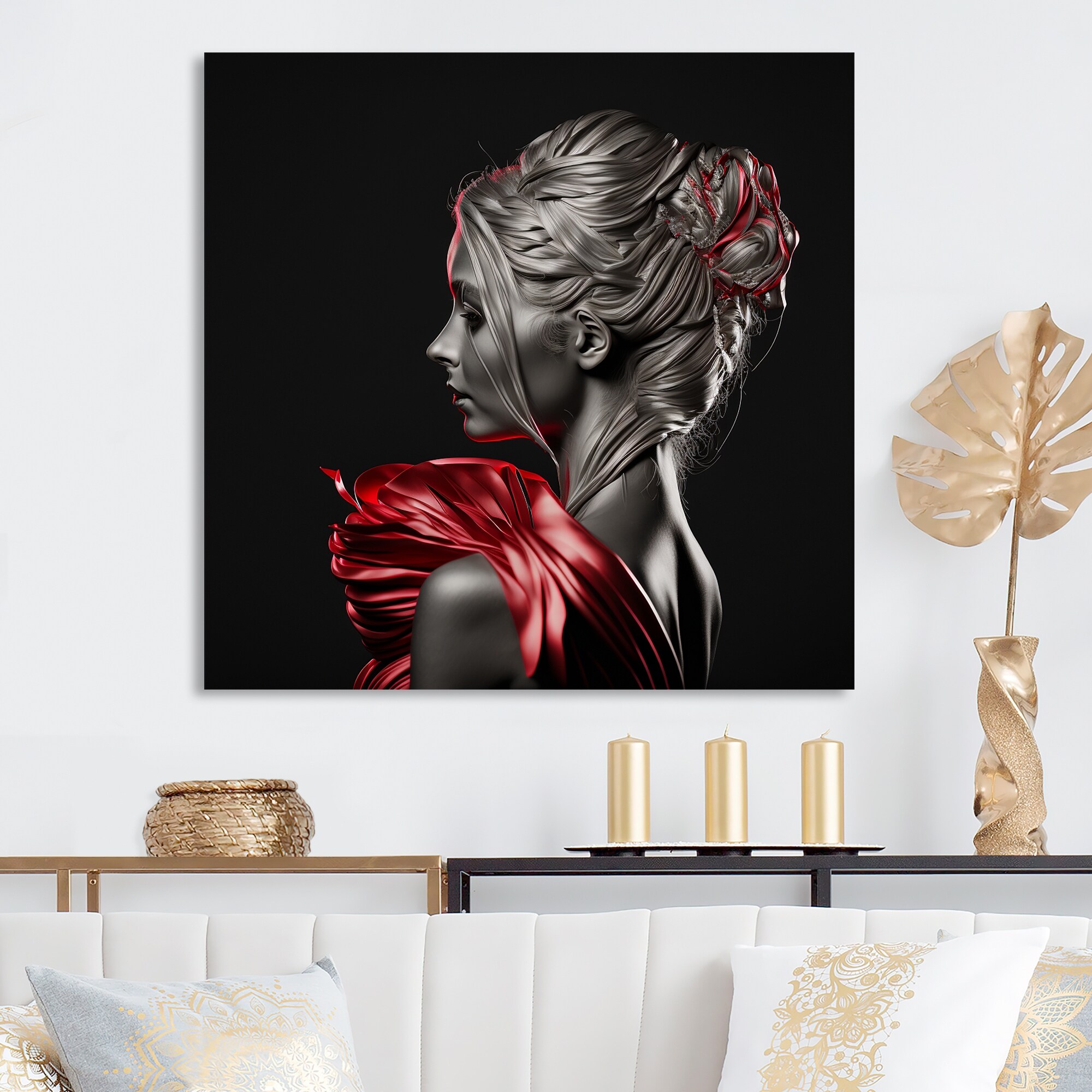 Designart 'Vintage Lady in Stylish Red IV' Fashion Woman Metal Wall Art