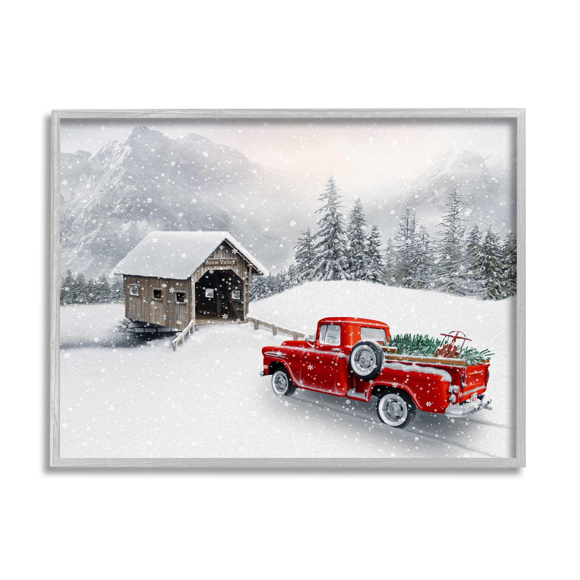 Stupell Relaxing Snowcapped Mountain Scenery Vintage Red Truck Framed Wall Art