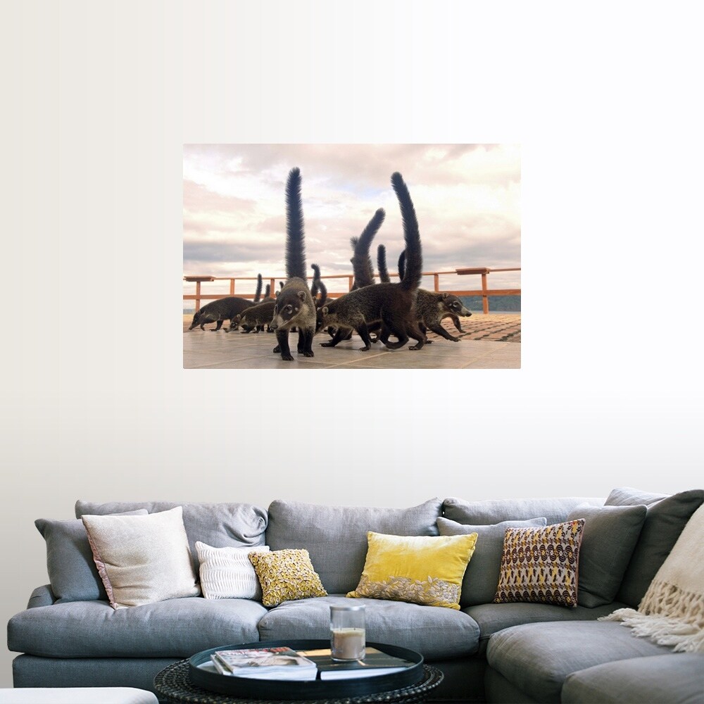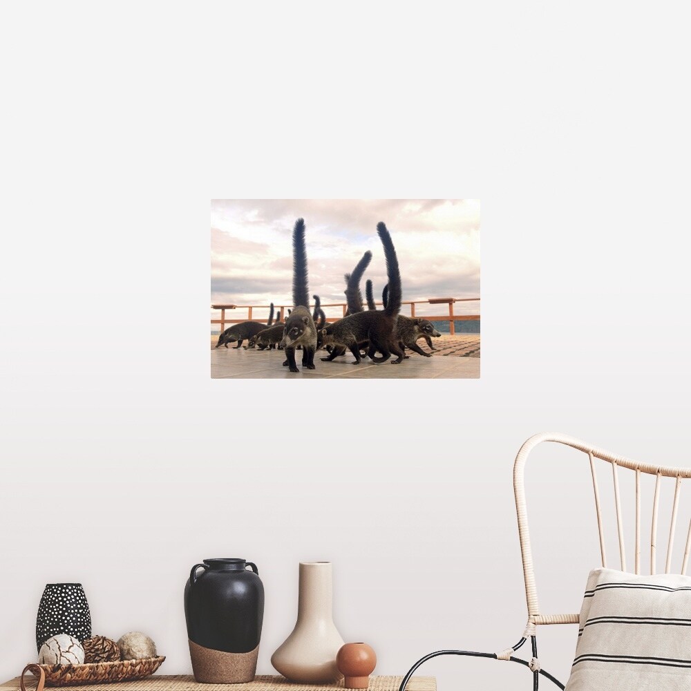 "Coatis (Nasua nasua) on a promenade, Gulf of Papagayo, Guanacaste, Costa Rica" Poster Print - Multi