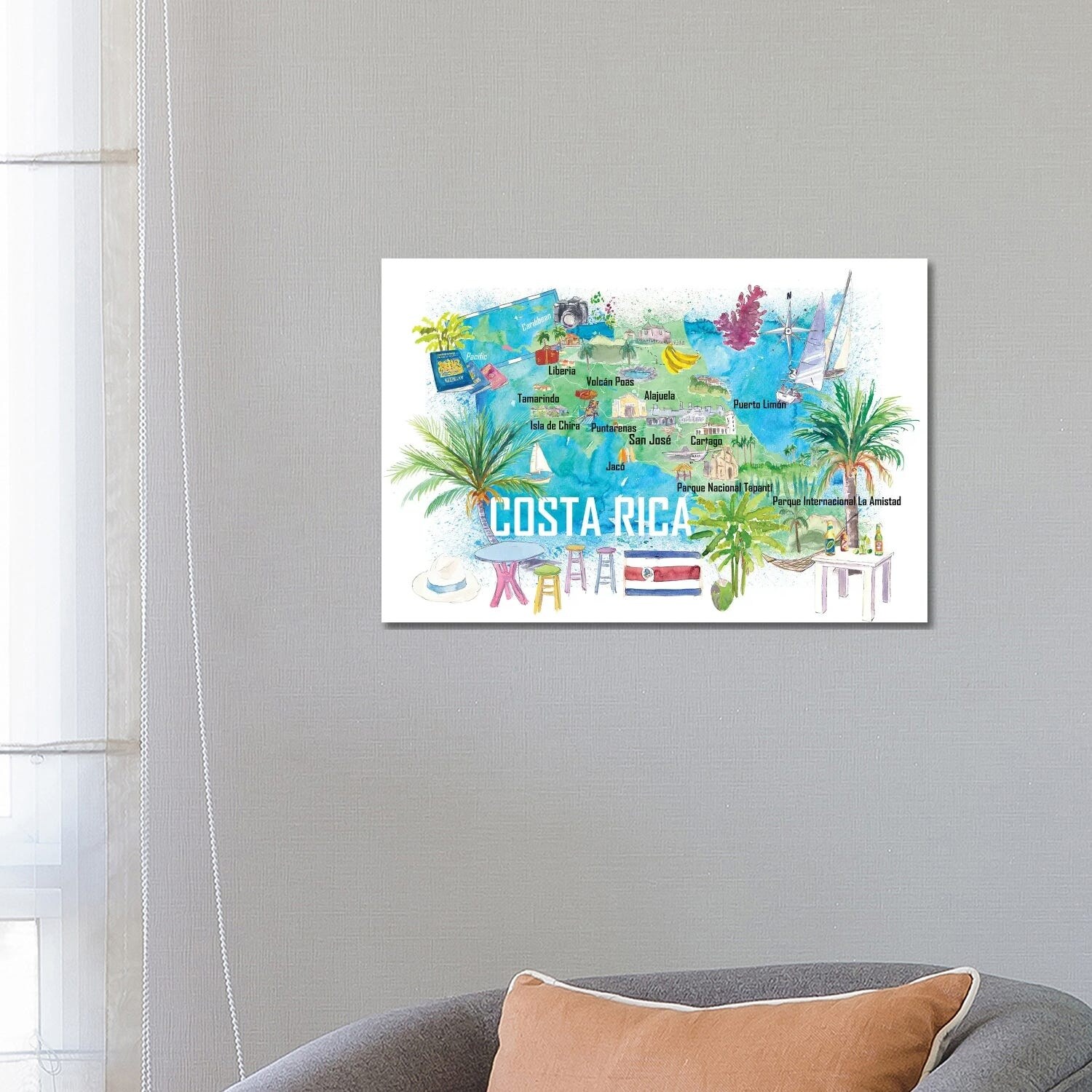 iCanvas "Costa Rica Illustrated Travel Map With Roads And Highlights" by Markus & Martina Bleichner Canvas Print