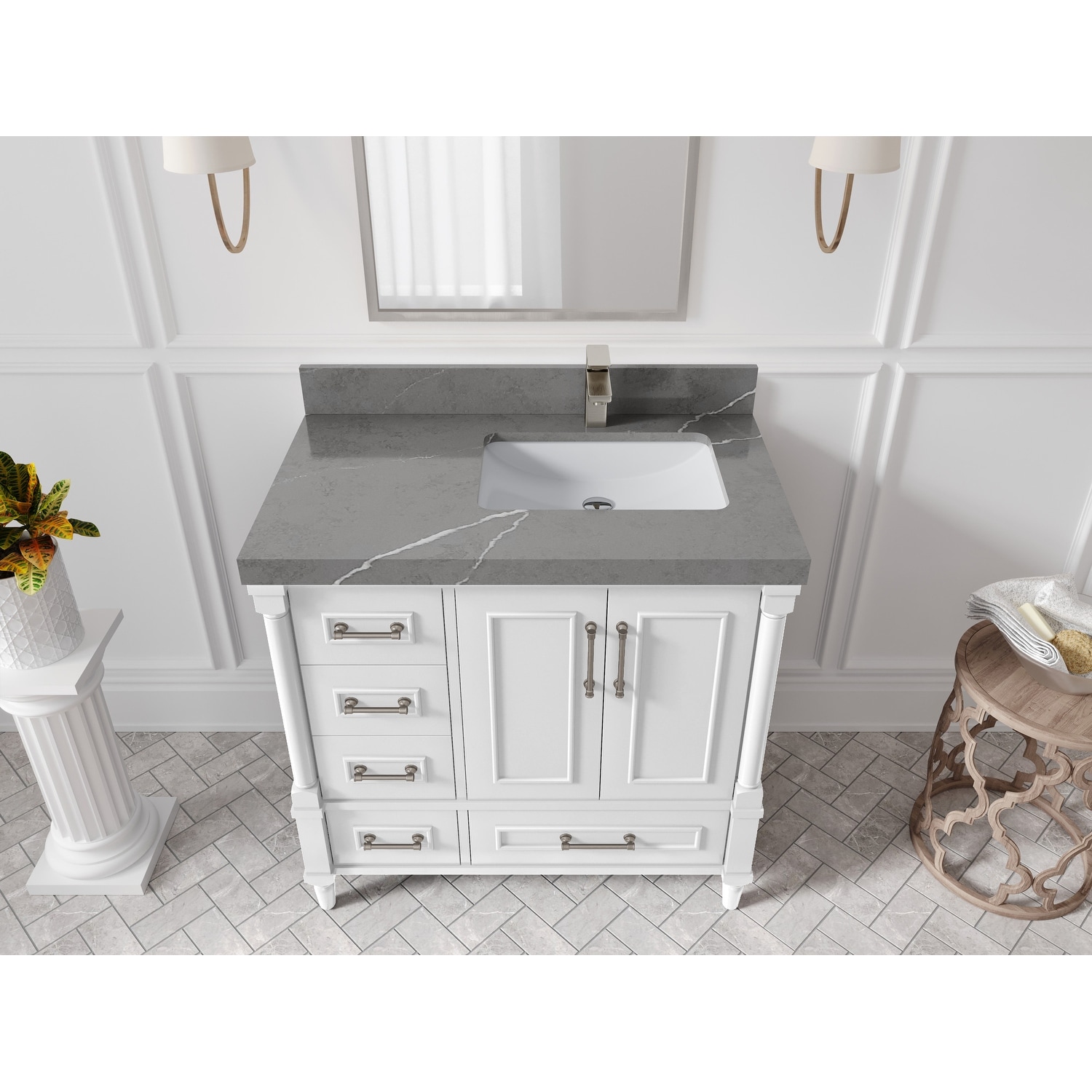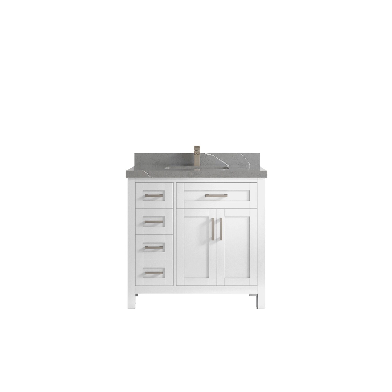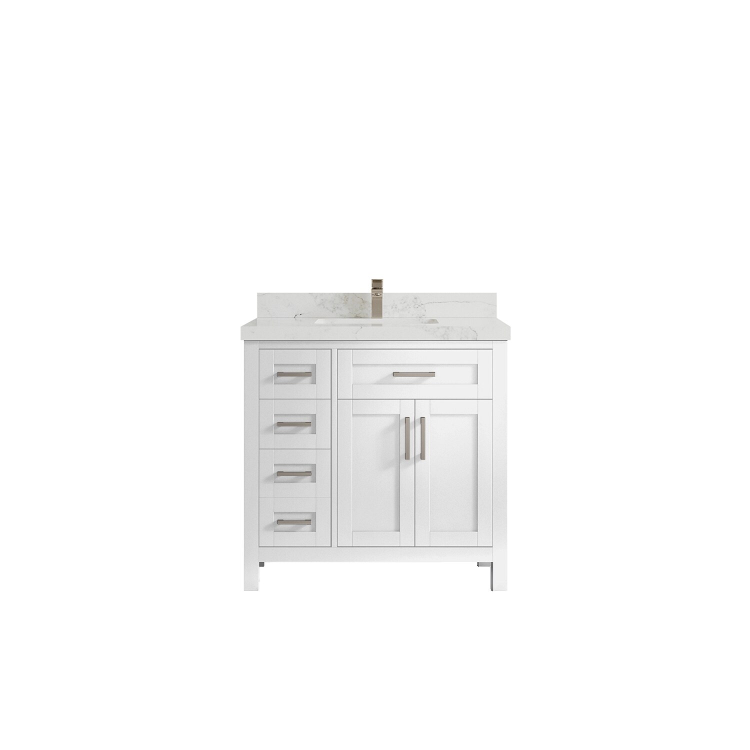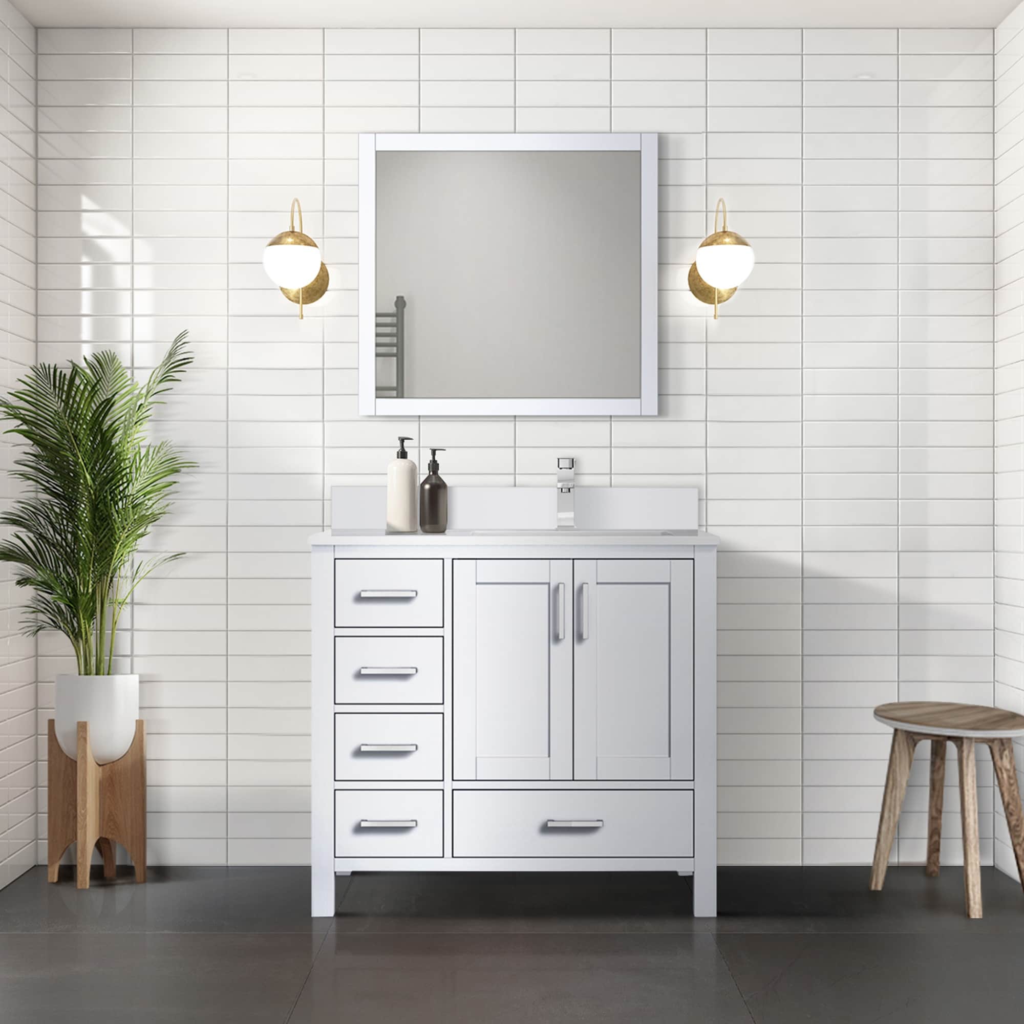 Jacques 36 in. Right White Bath Vanity, Quartz Top, Faucet, & Mirror