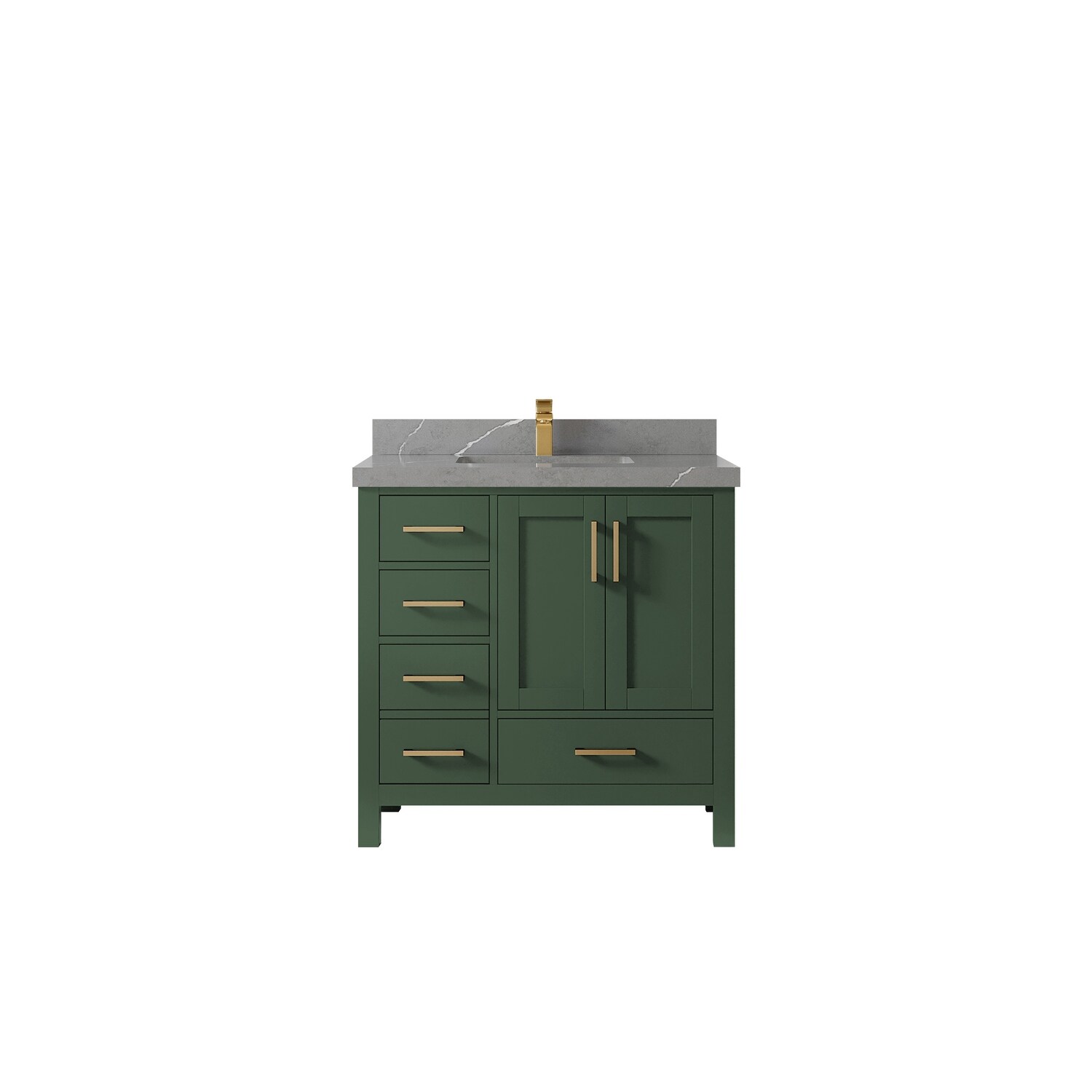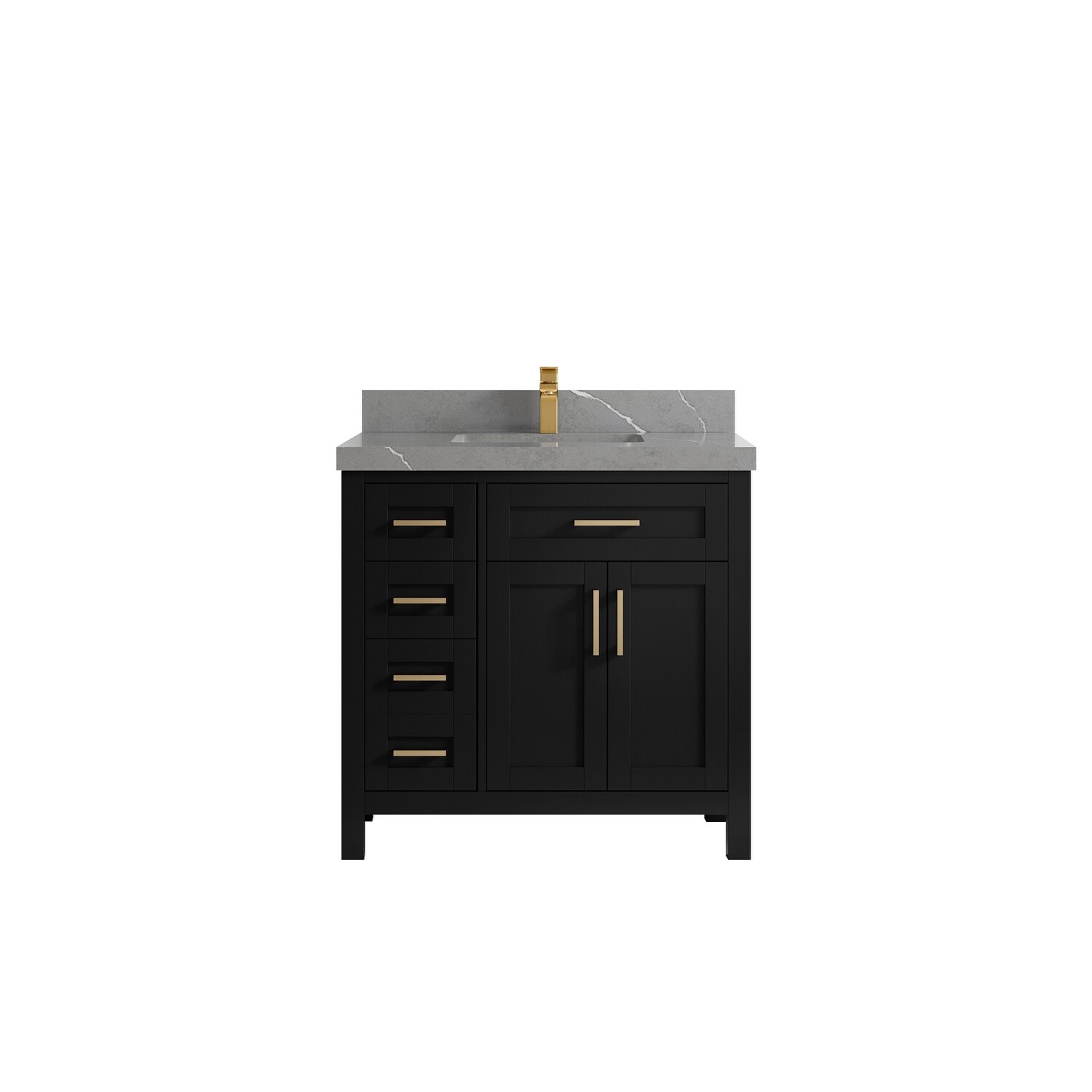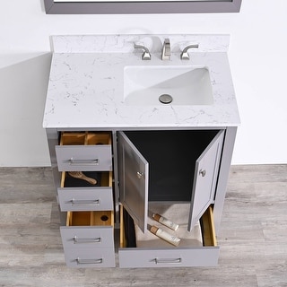 BATHLET 36 inch Grey Bathroom Vanity Set with Marble Top, Right Sink