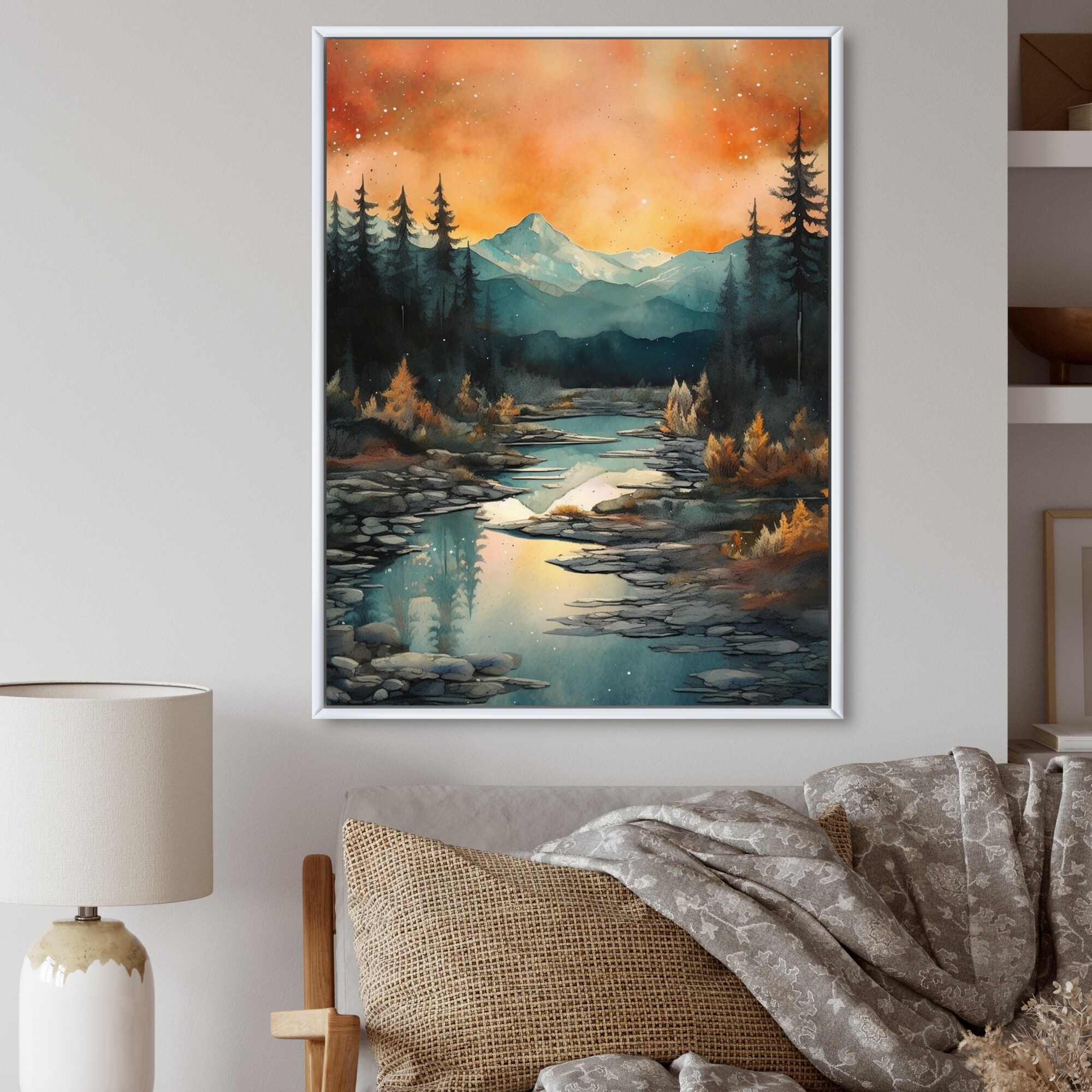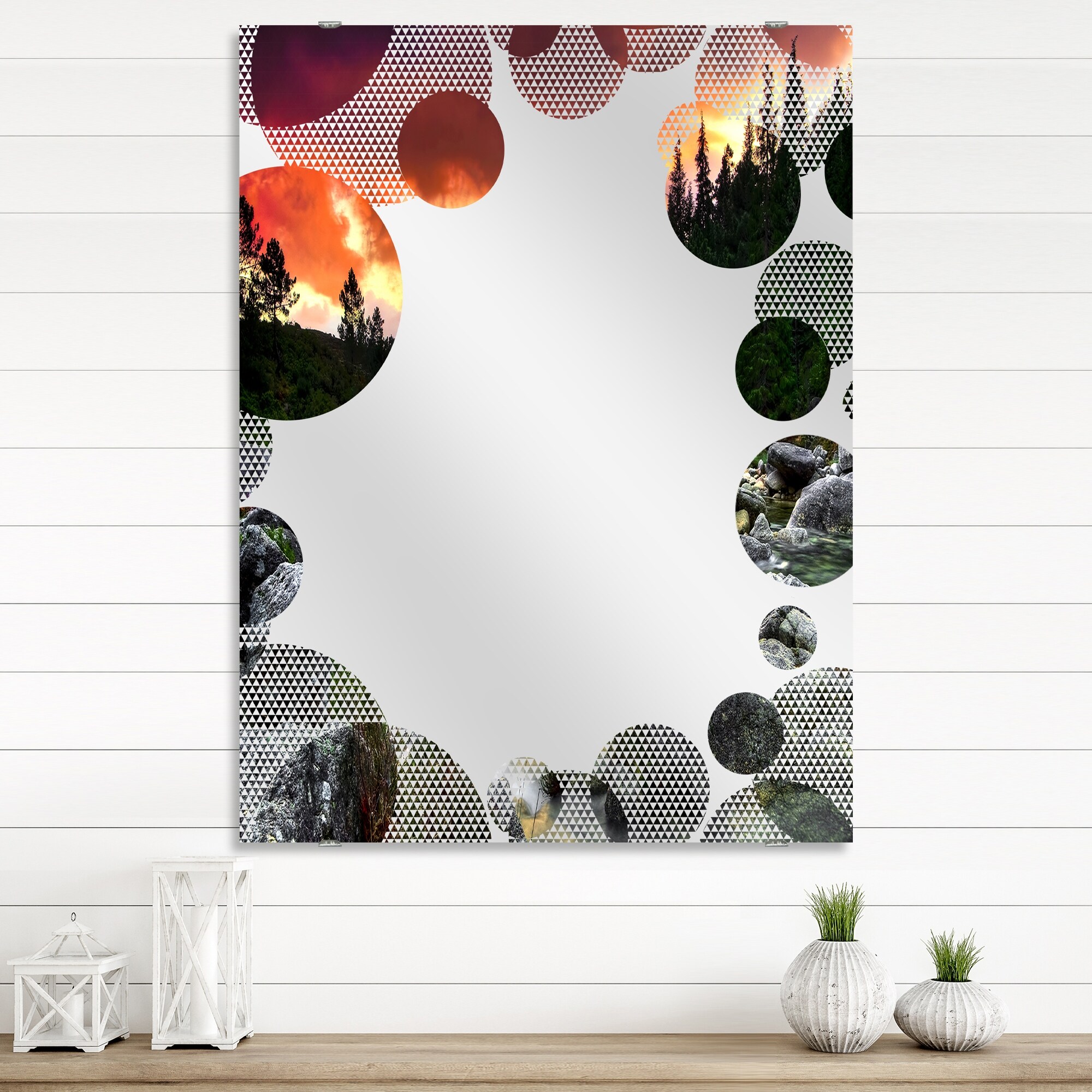 Designart 'Rocky Mountain River at Sunset' Landscape Printed Wall Mirror