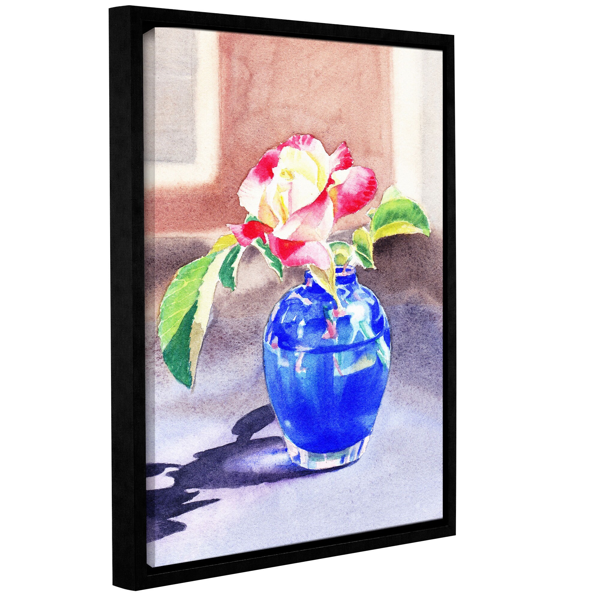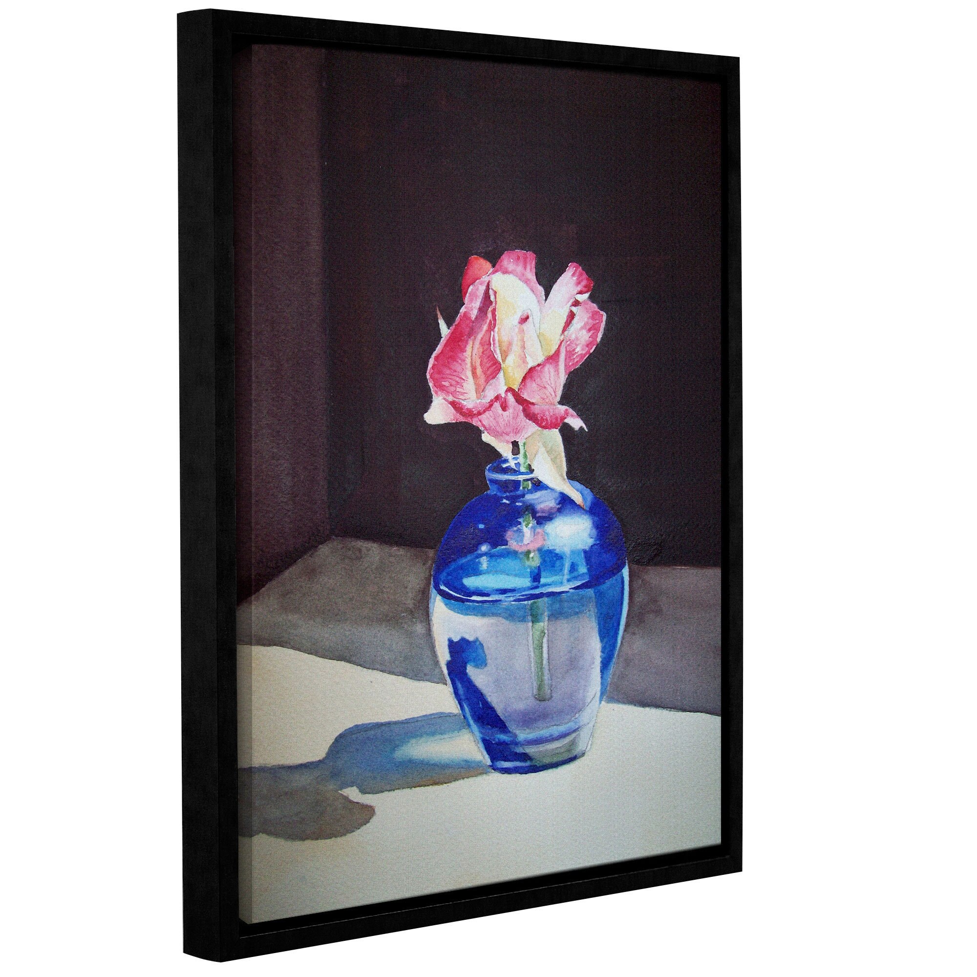 ArtWall 'Irina Sztukowski's Rose in the Blue Vase 1' Gallery Wrapped Floater-framed Canvas
