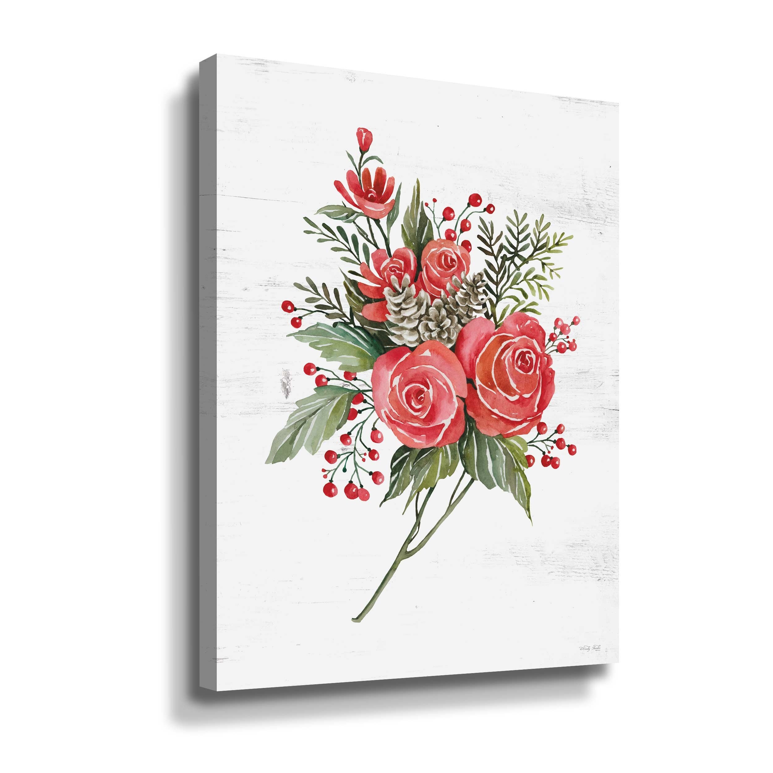 Rose Christmas Botanical Gallery Wrapped Canvas