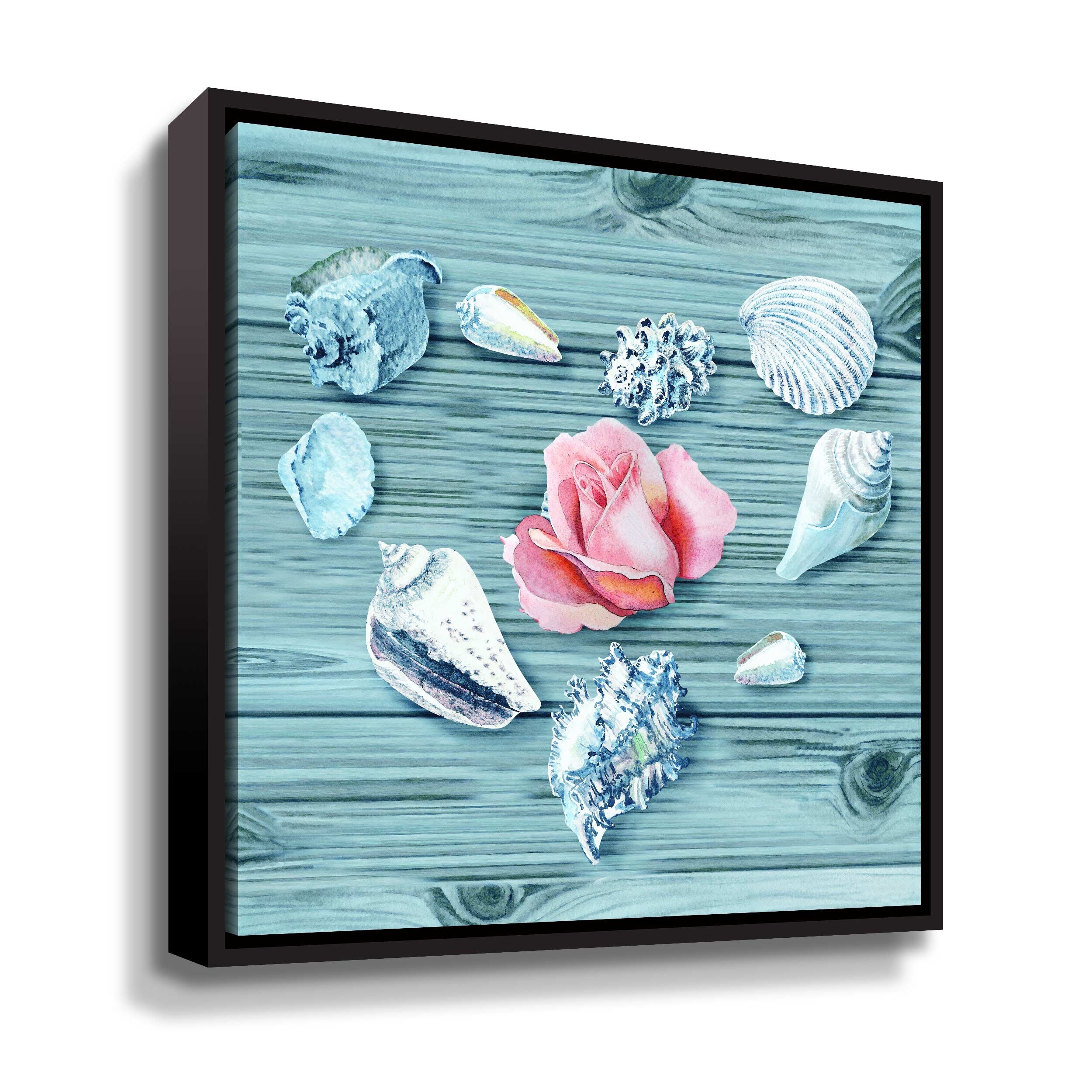 Seashells Heart With Pink Rose Flower Beach House Spa Gallery Wrapped Floater-framed Canvas by Irina Sztukowski