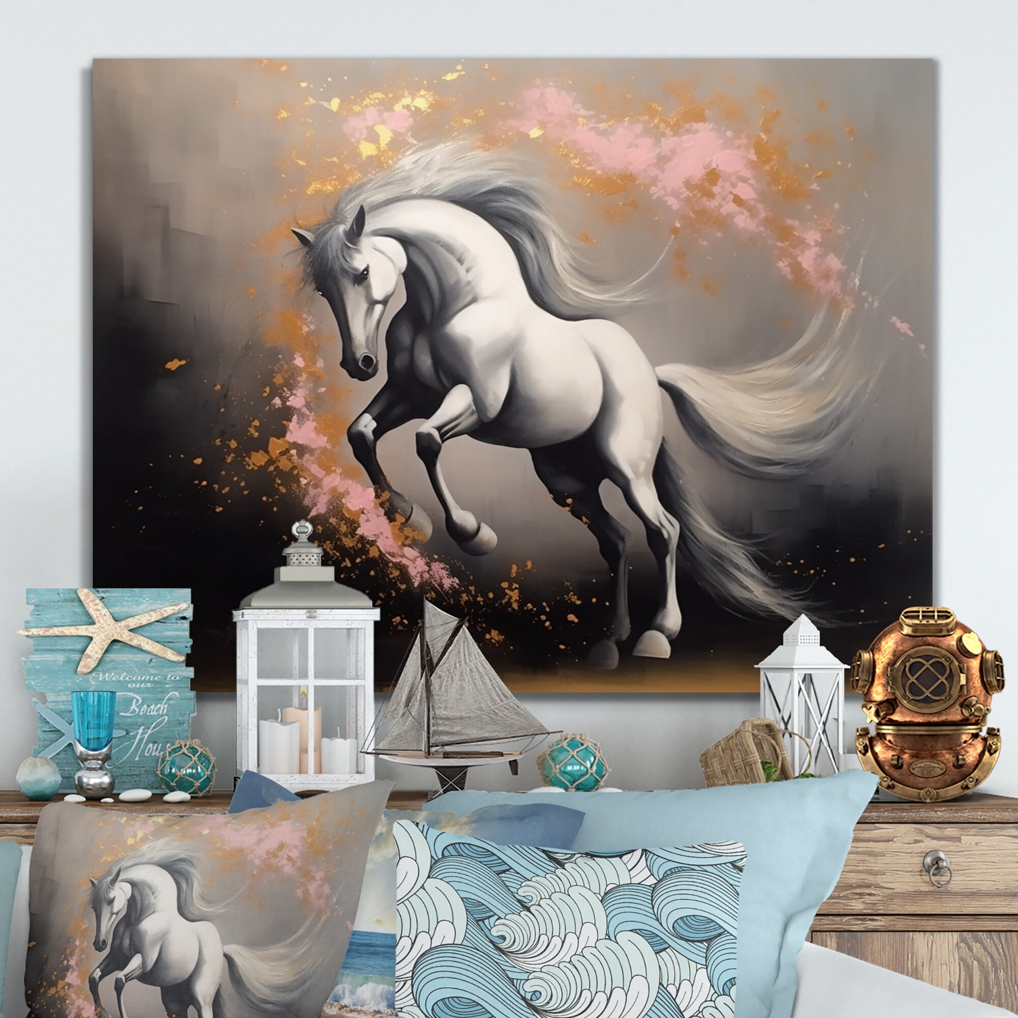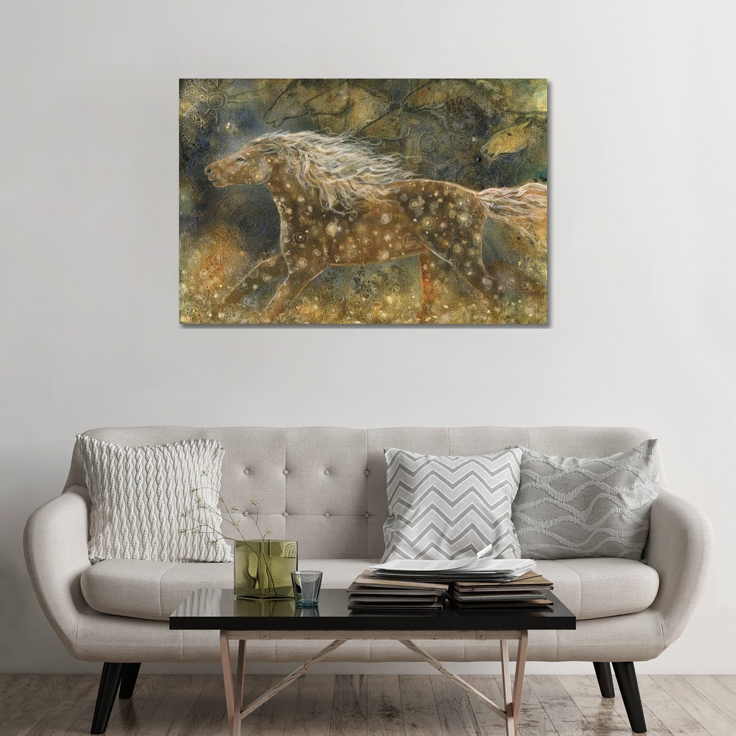 Oliver Gal 'Running Equus' Animals Wall Art Framed Canvas Print Farm Animals - White, Gold
