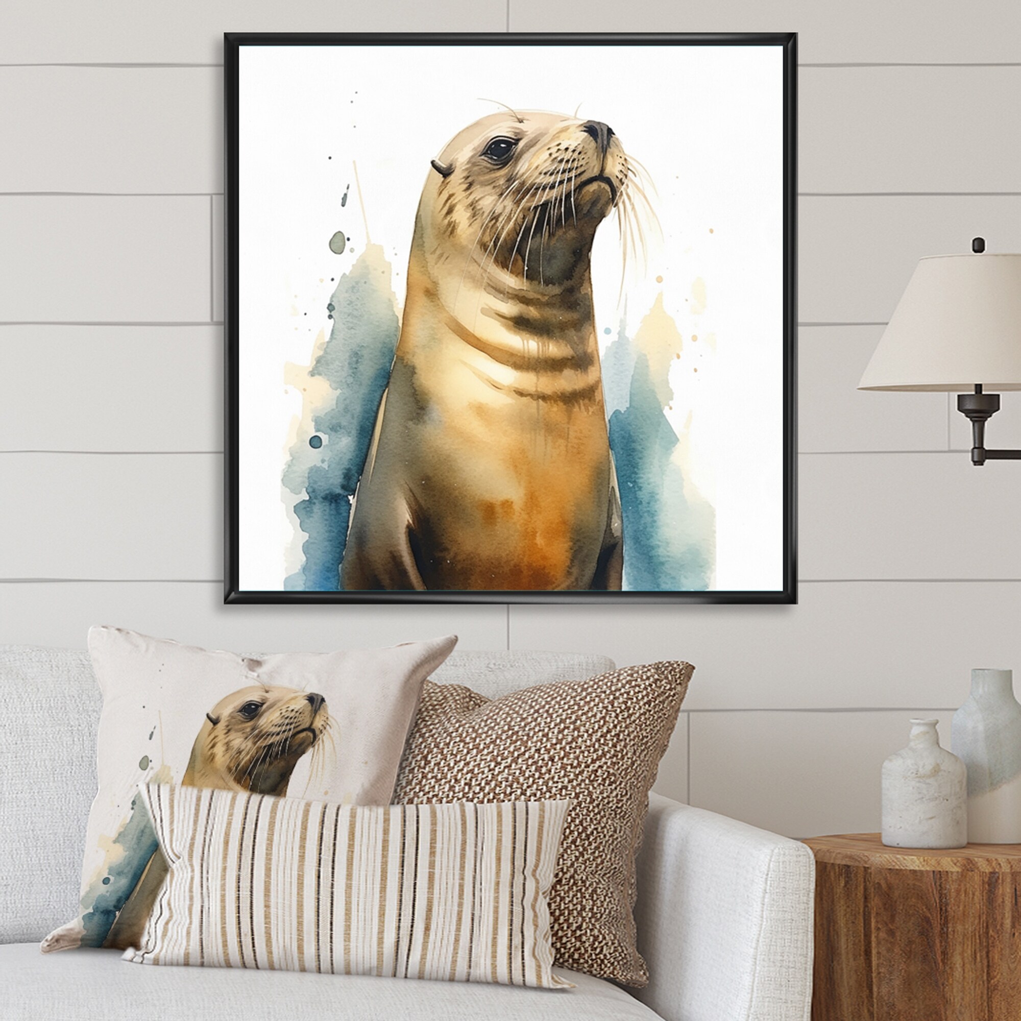 Designart "Curious Sea Lion I" Seal/Sea Lion Framed Canvas Prints