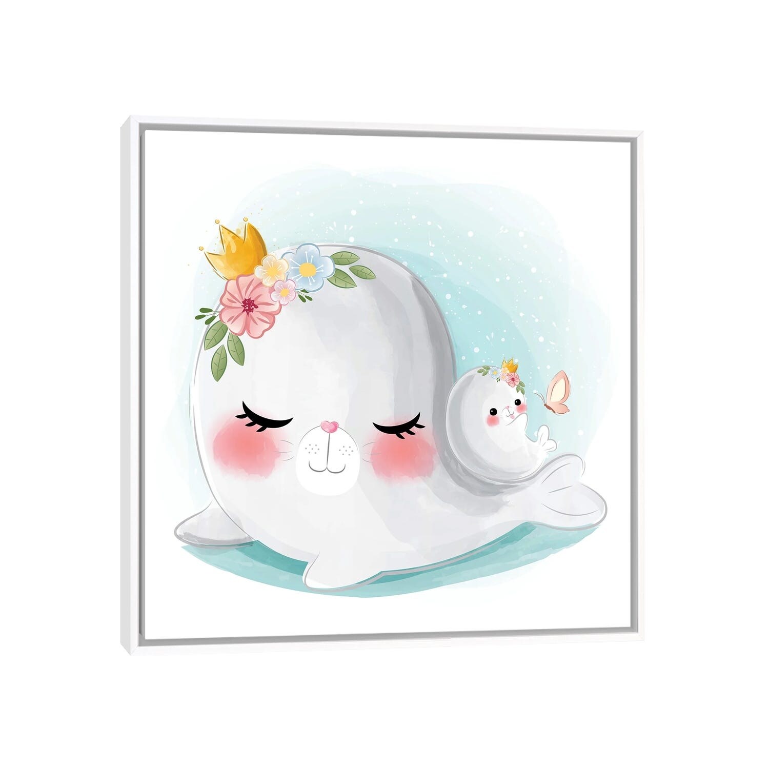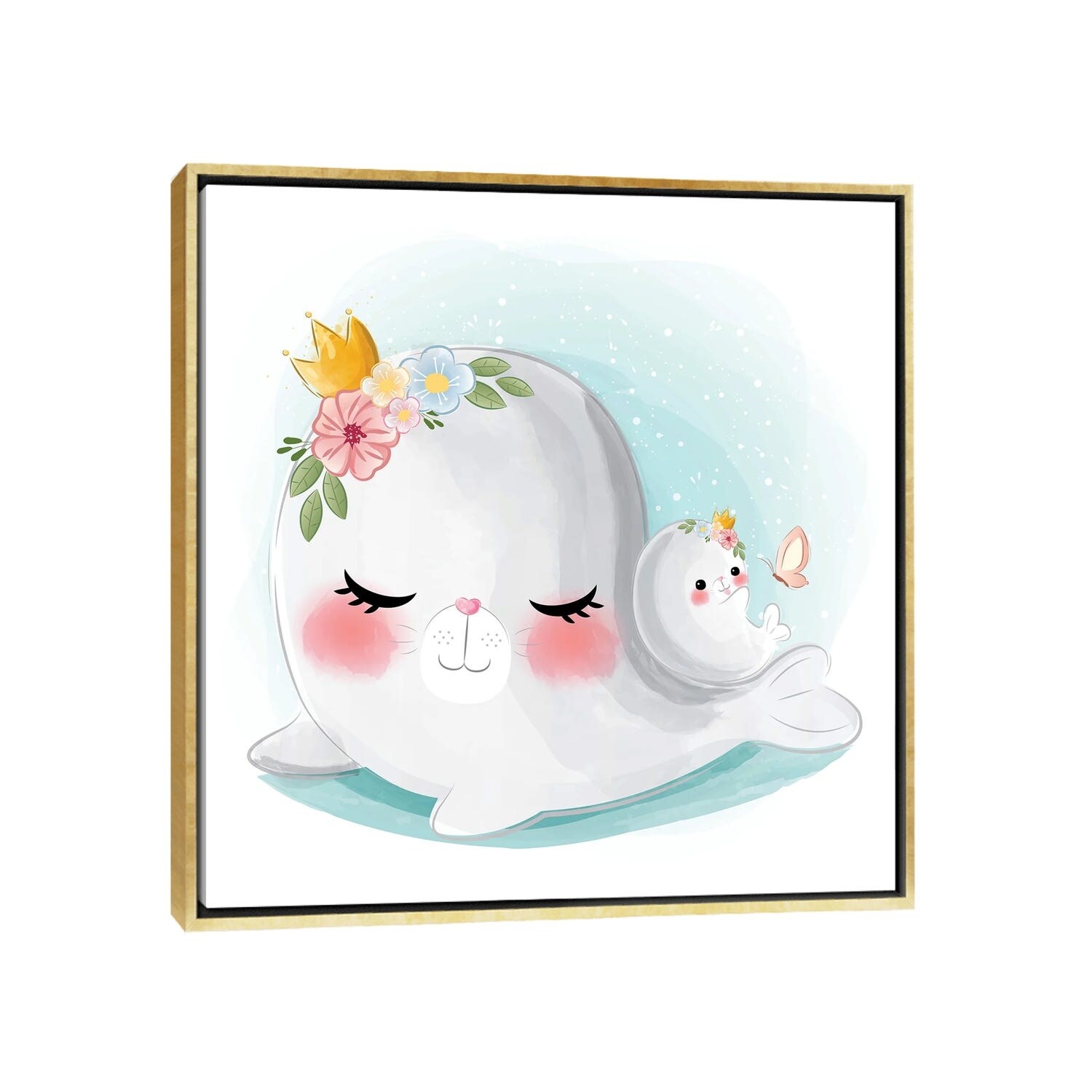 iCanvas "Mommy And Baby Seal" by Art Mirano Framed