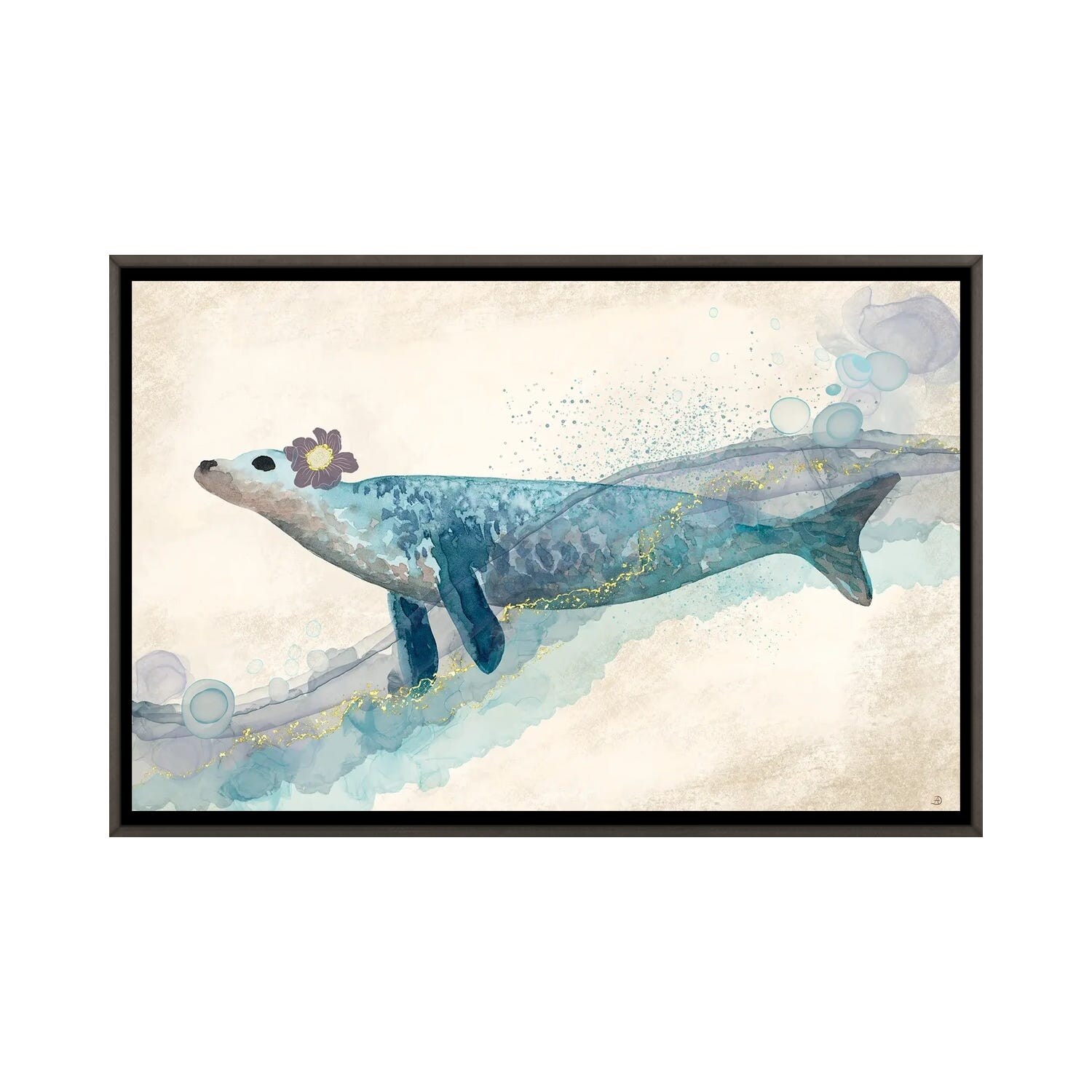 iCanvas "Seal In the Ocean Waves" by Andreea Dumez Framed Canvas Print