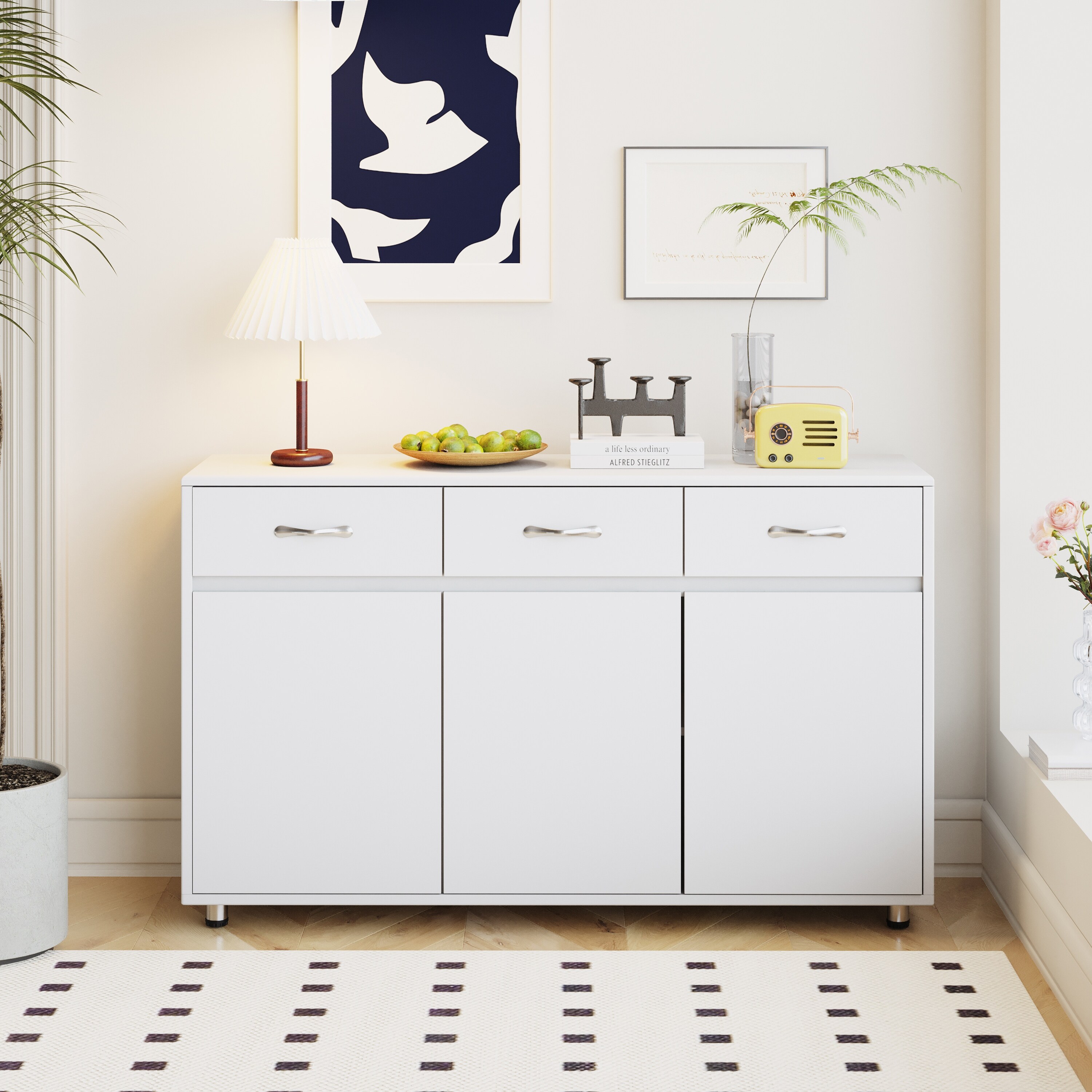 48'' Solid Pine Wood Top Console Side Table with 3 Storage Drawers and 2 Shelves