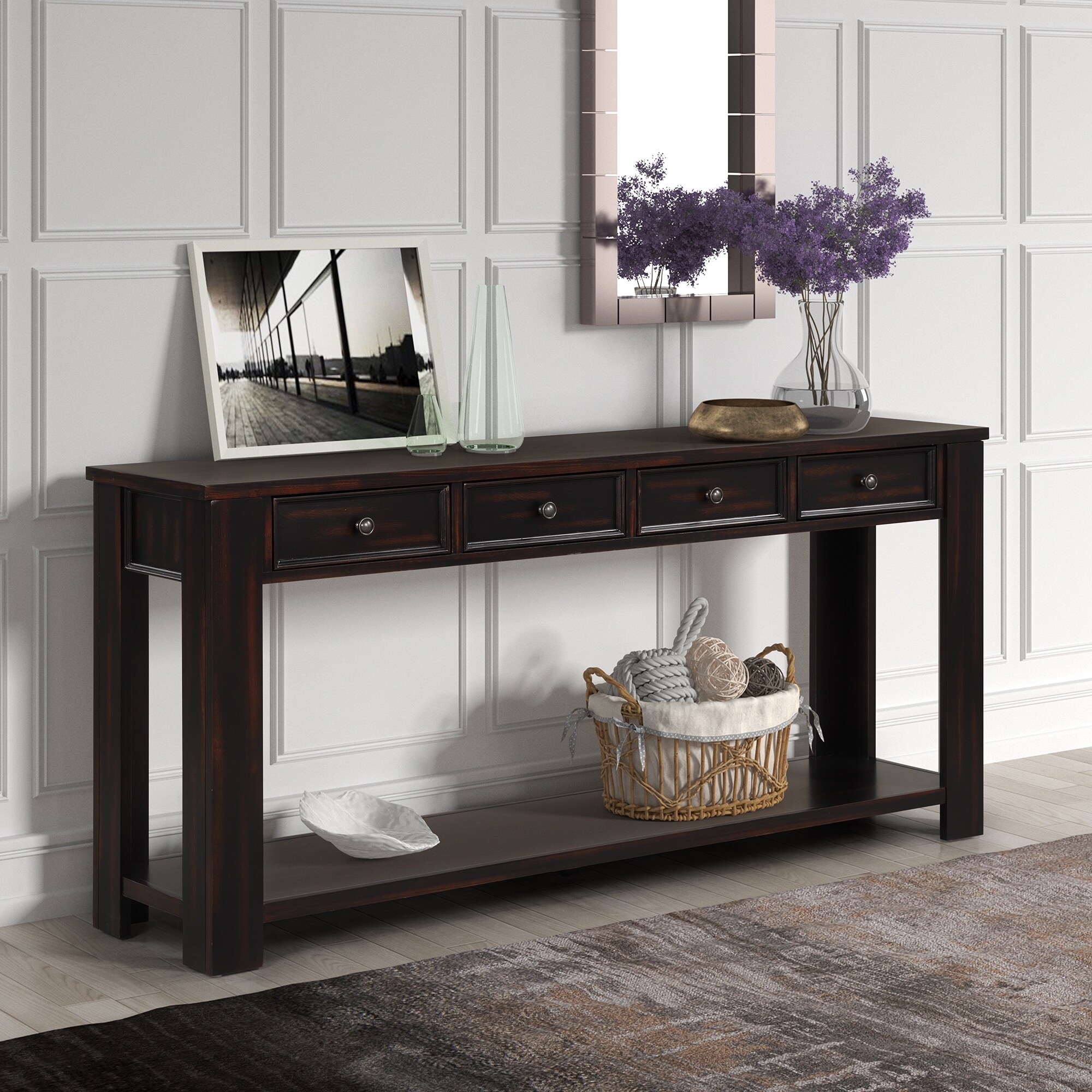 60" Solid Wood Console Table Side Table Classic Rustic Entryway Table