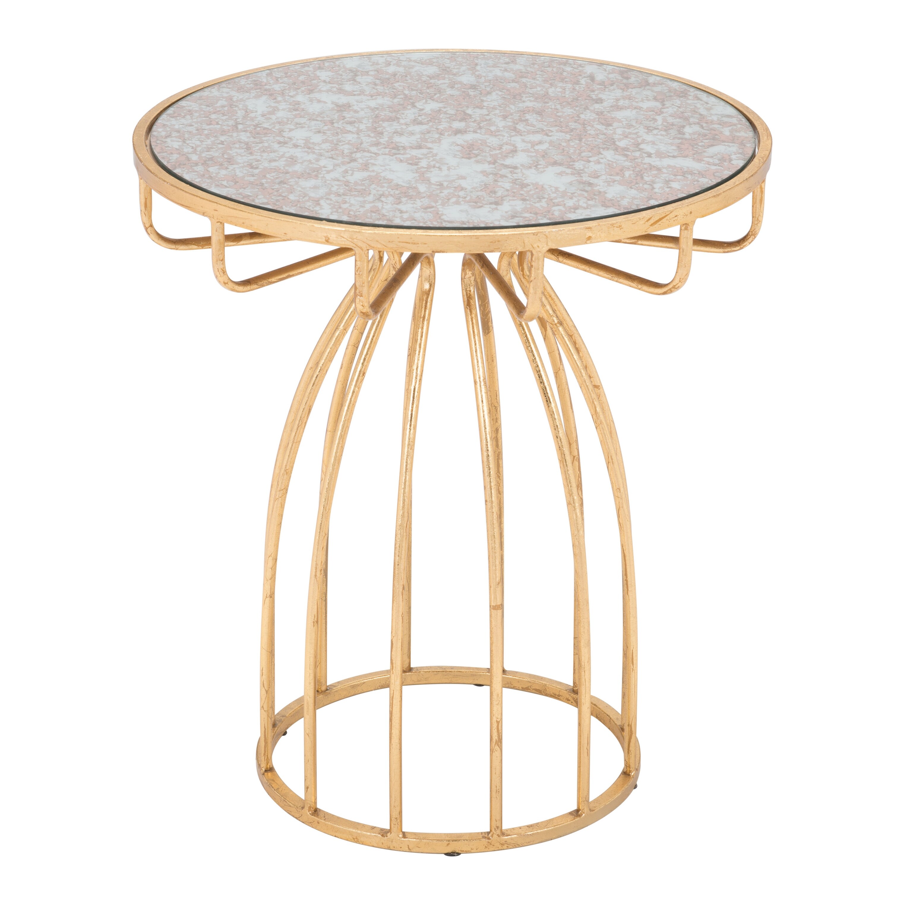 Coffee Table Iron Art Side Table with Brown Marble Top