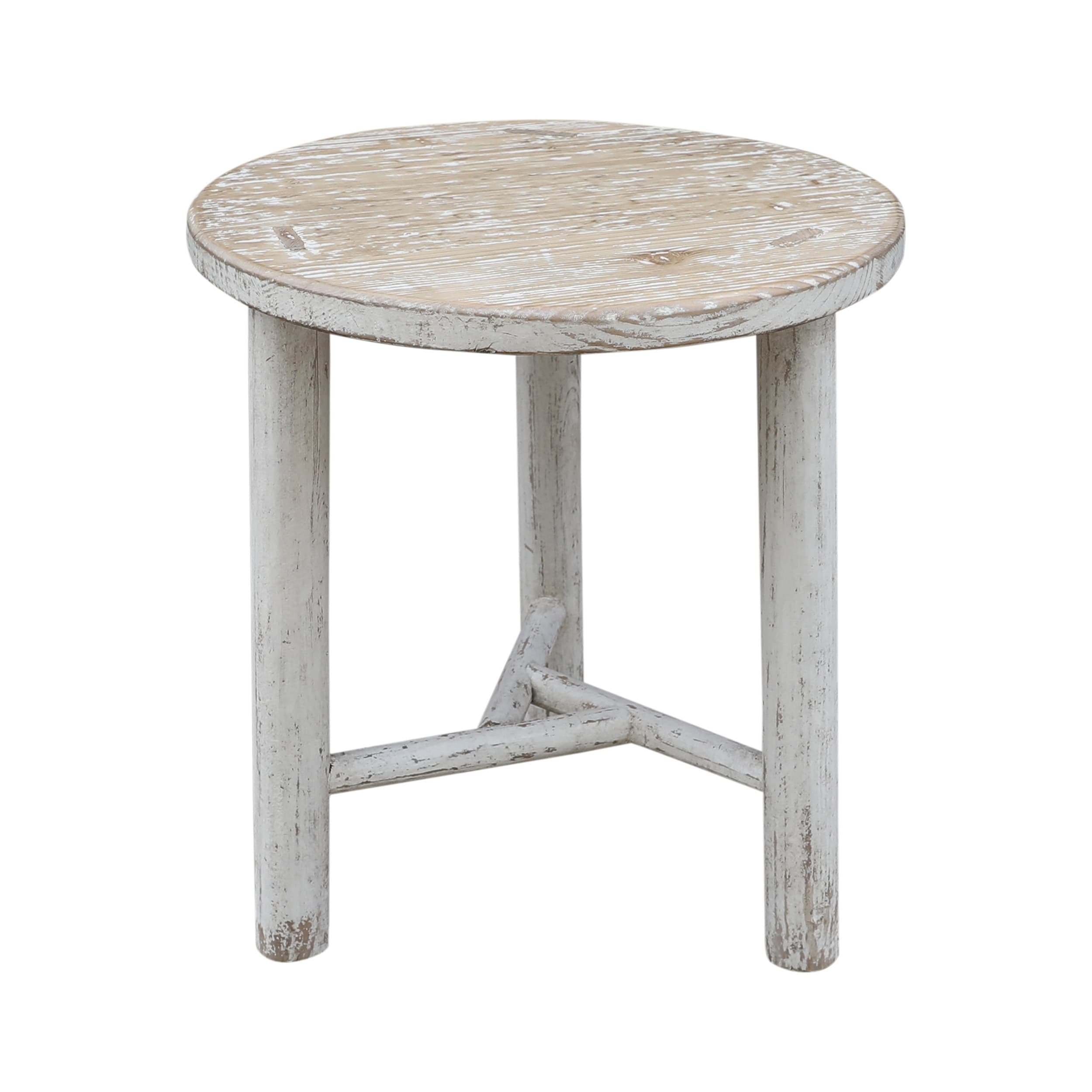 Artissance 22" H Round Distressed White Pine Wood Indoor Side Table w/Round Legs, Home Furniture