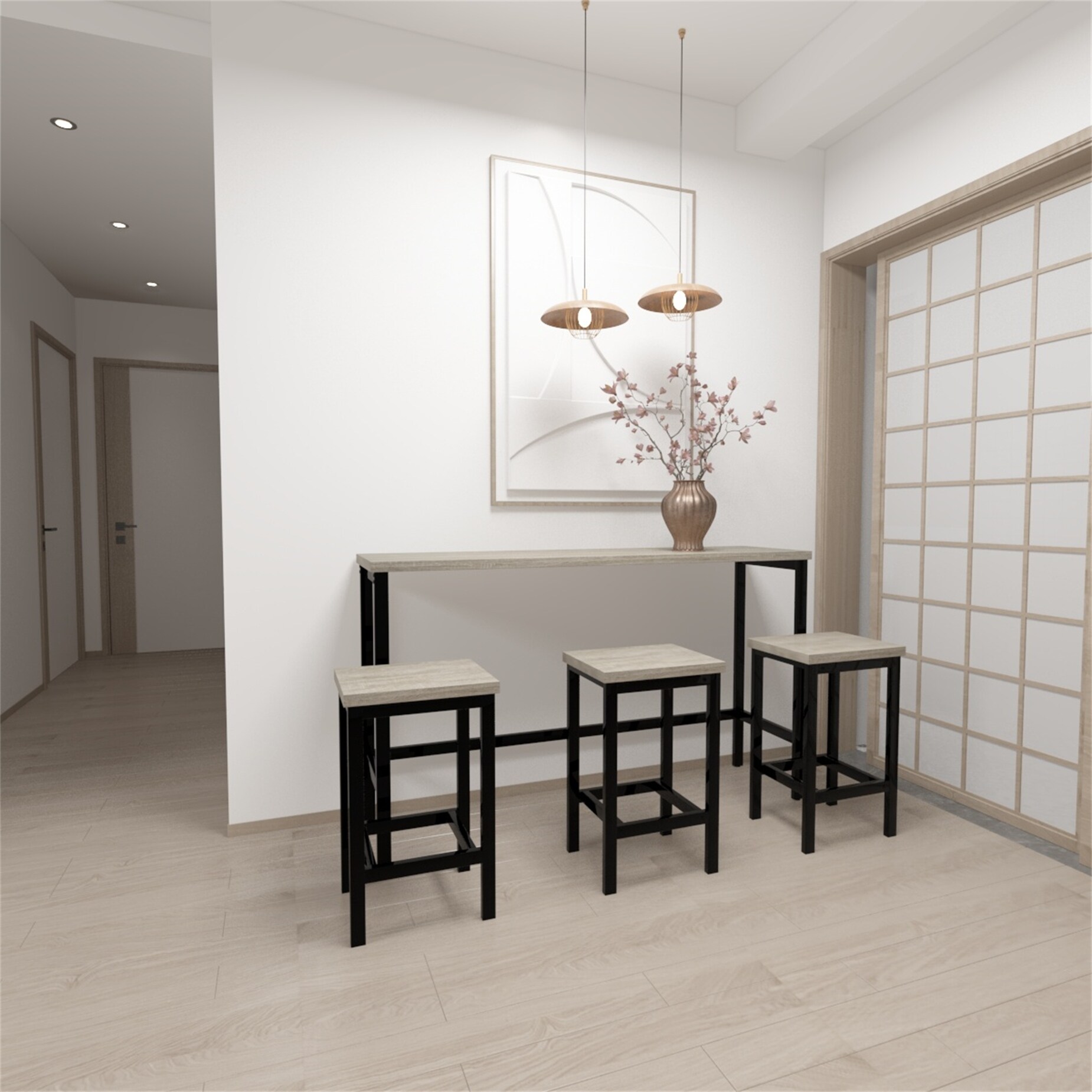 60-inch Long Dining Table Set - 3 Stools and Side Table