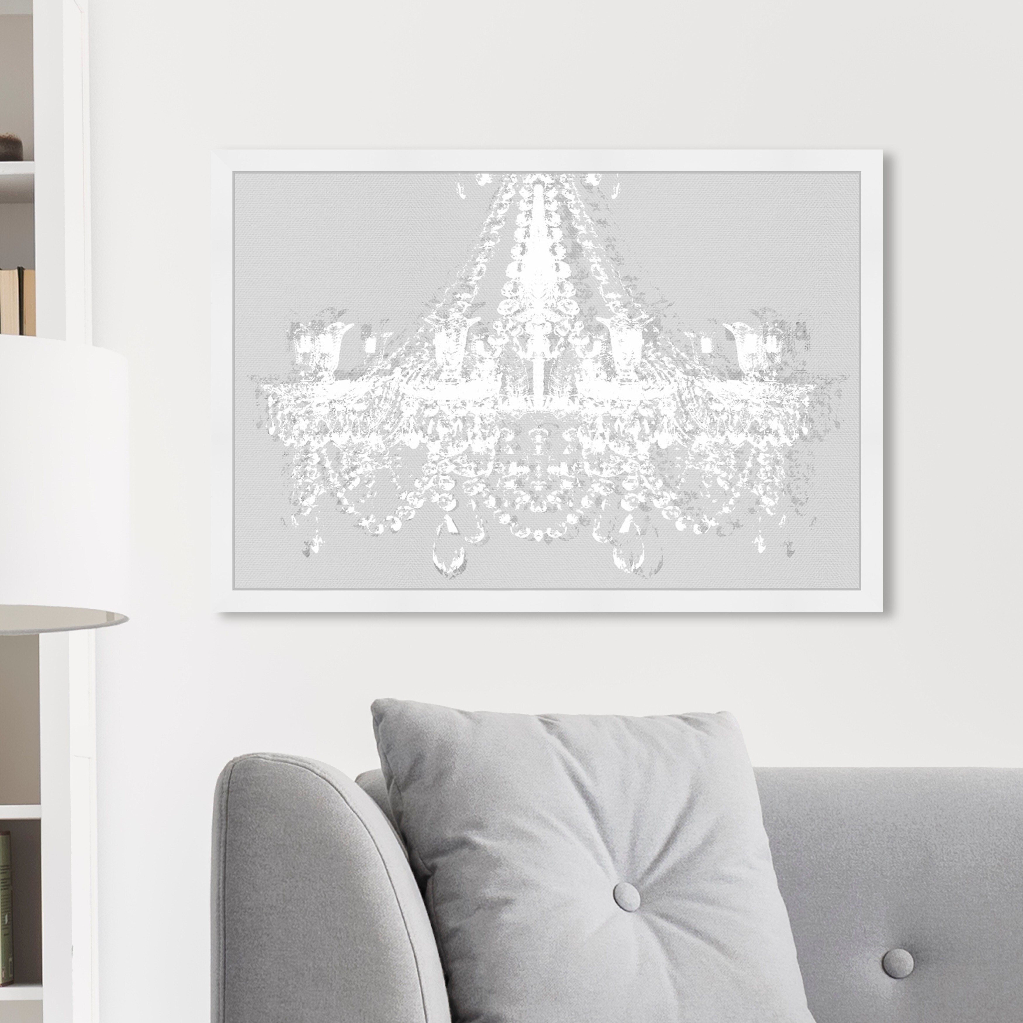Oliver Gal 'Dramatic Entrance Silent Gray' Fashion and Glam Wall Art Framed Print Chandeliers - White, Gray