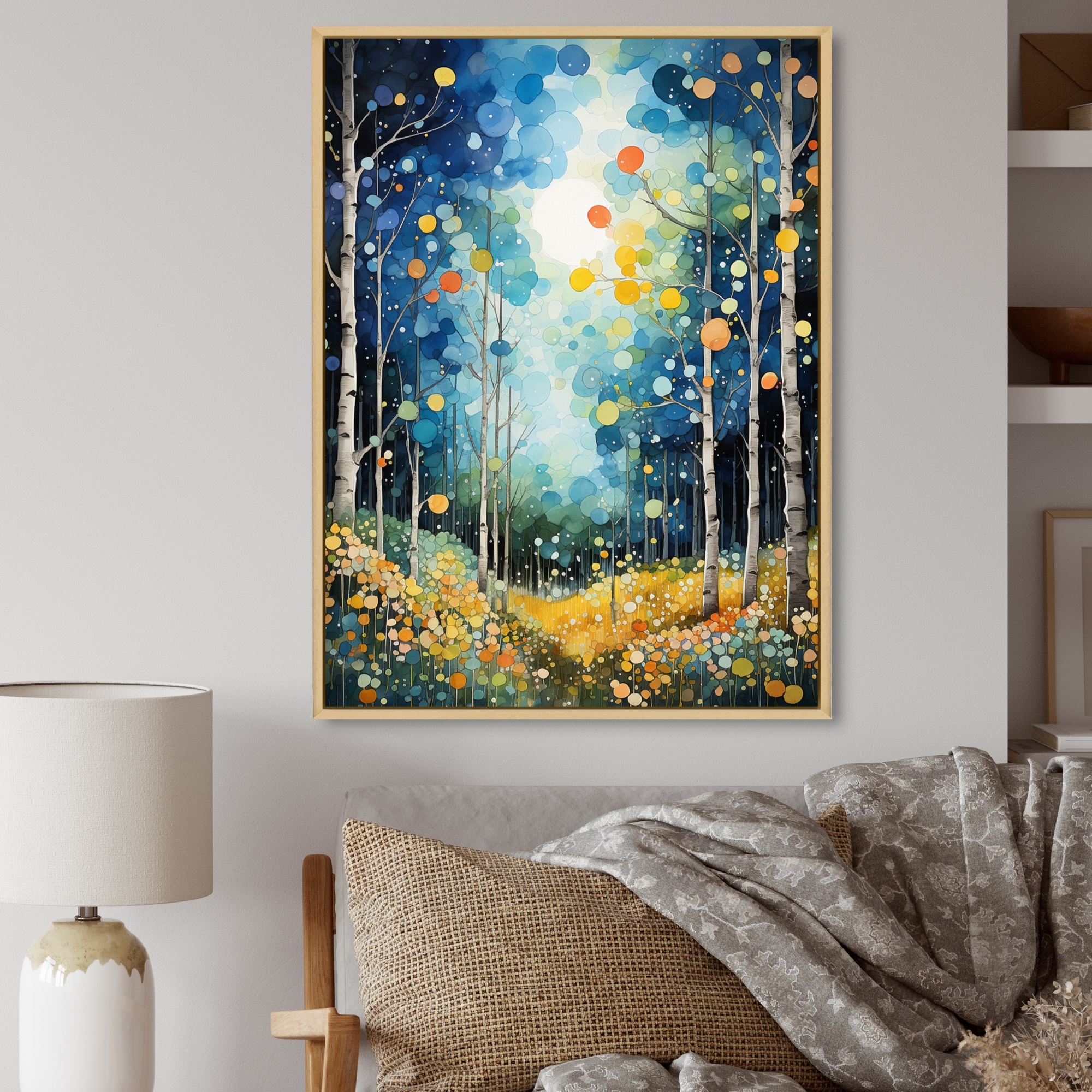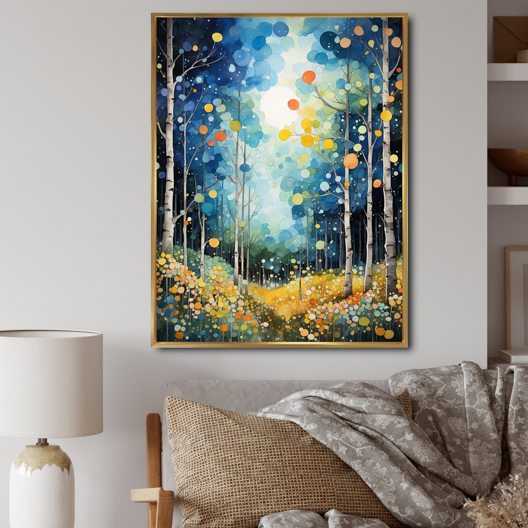 Designart "Forest Silent Symphony Pointillism I" Forest Framed Canvas Art Print