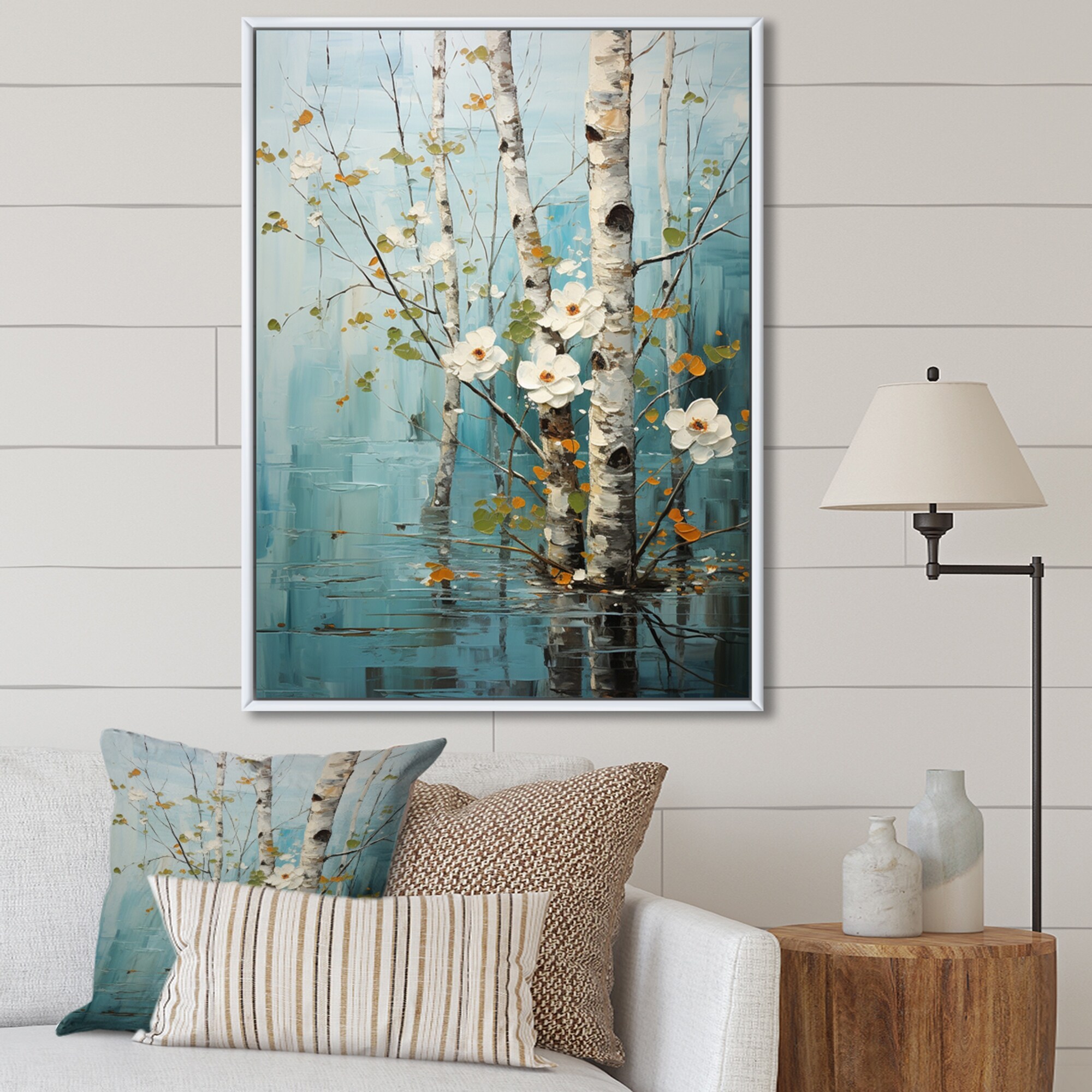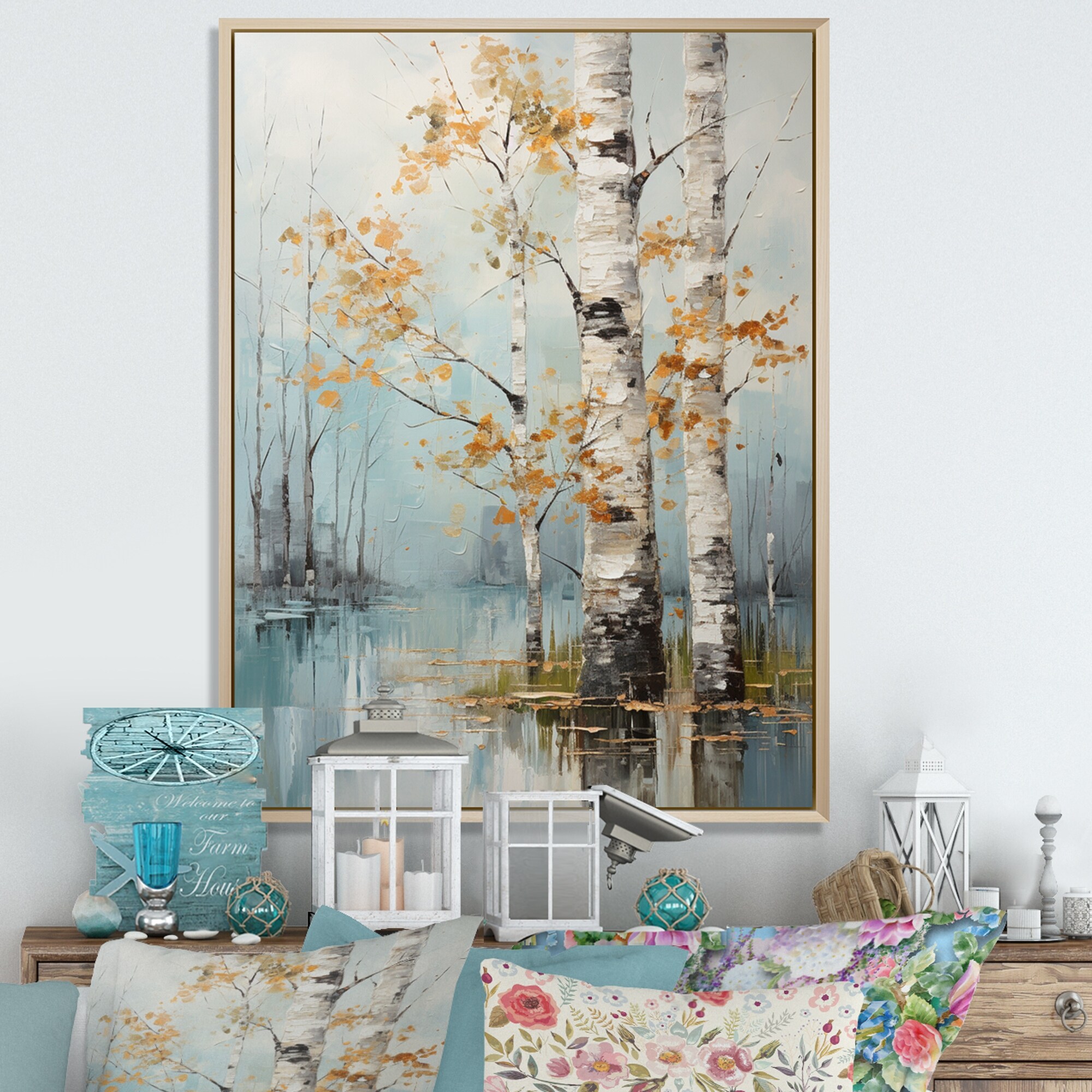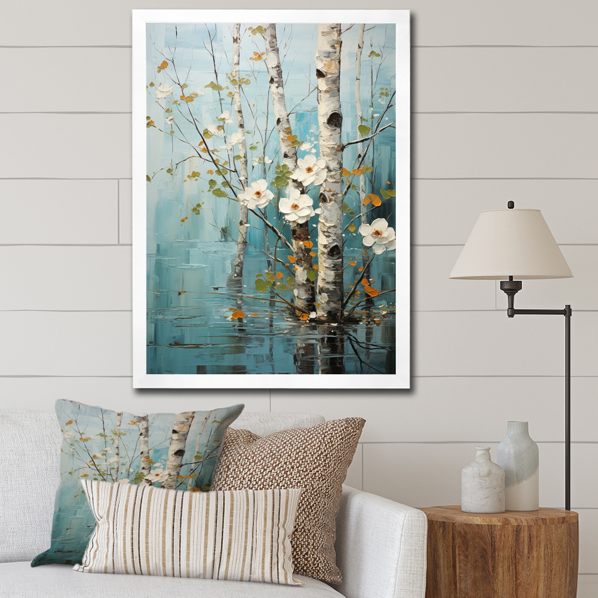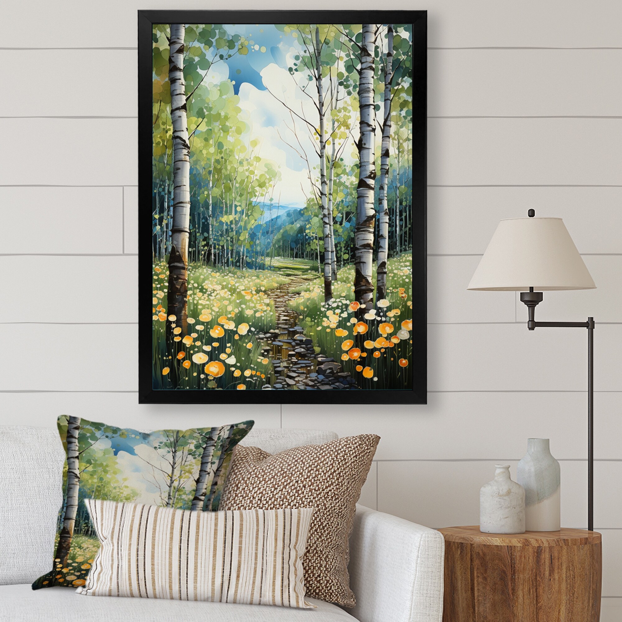 Designart "Birch Woods Silent Woods VI" Tree Birch Framed Wall Art Living Room